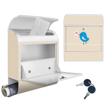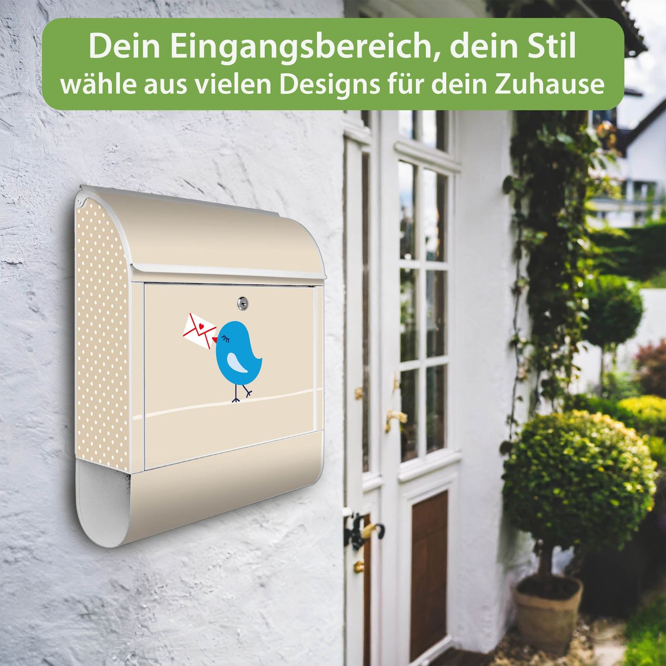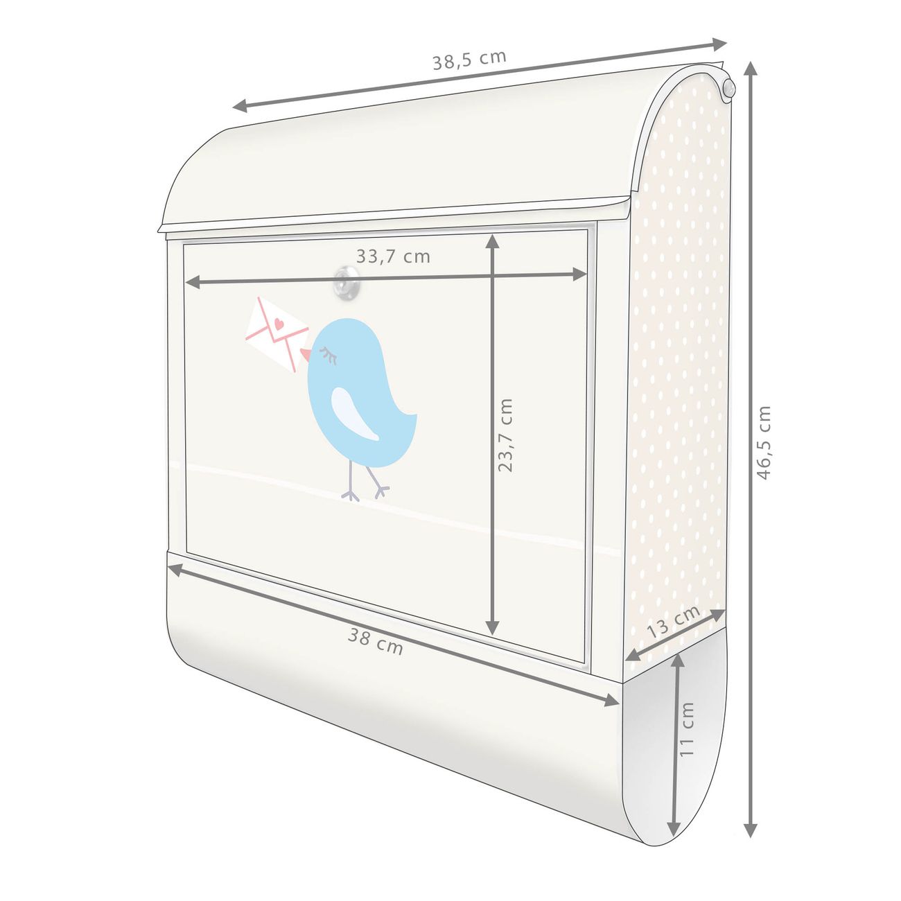 DESIGN: Der Postkasten mit Motiv Motiv Liebesbrief hat ein sehr ansprechendes und ausgefallenes Design, damit entlocken Sie Ihren Nachbarn und dem Postboten ein Lächeln. Heben Sie Sich von der tristen grauen Masse ab, ohne auf Funktionalität zu verzichten. DETAILS: Der Postkasten besteht aus pulverbeschichtetem Stahl. Er ist 38x46x12,5cm groß. Das Motiv besteht aus einer wetter- und UV-resistenten Folie, die mit einem Schutzlaminat überzogen ist, sodass der Briefkasten zusätzlich vor Kratzern geschützt ist. Der Briefkasten wird mit Montagematerial, zusätzlich zwei Schlüssel sowie einer Bohrschablone geliefert. NUTZEN: Sie können diesen Briefkasten sowohl als Wandbriefkasten montieren oder einen passenden Ständer kaufen und als Standbriefkasten einbetonieren. Die Größe bietet genügend Platz für Sendungen aller Art, der Einwurf fasst auch größere A4 Sendungen. BANJADO: Ihr Briefkasten wird in Sachsen in einer kleinen Manufaktur von Hand veredelt. Die Motivfolie ist lösungsmittelfrei und schutzlaminiert für einen langen Halt. Wir legen großen Wert auf die Verbindung von Funktionalität und Design. Sie erhalten Handarbeit aus Sachsen.