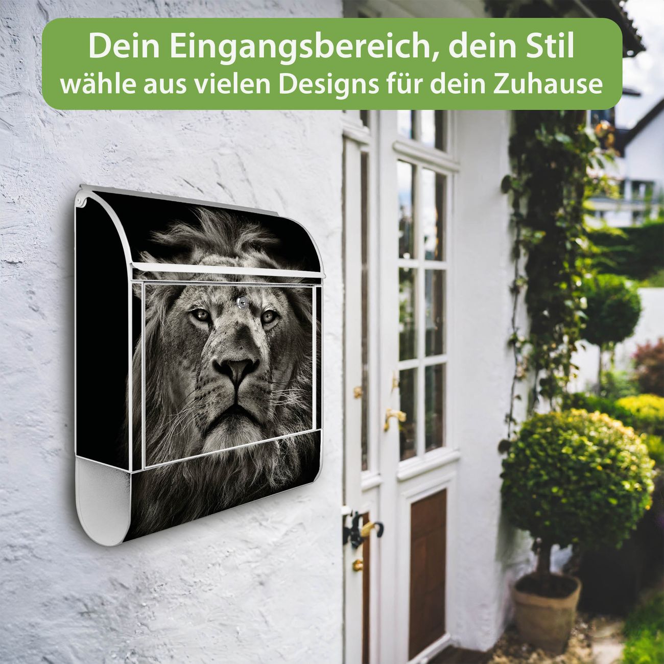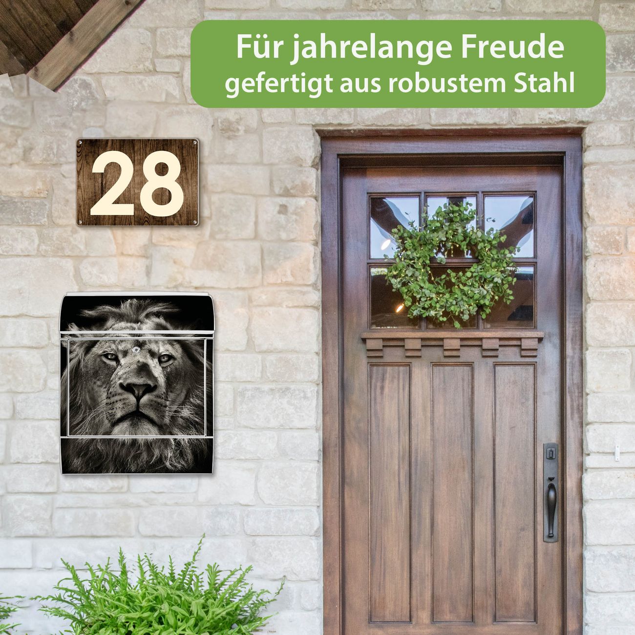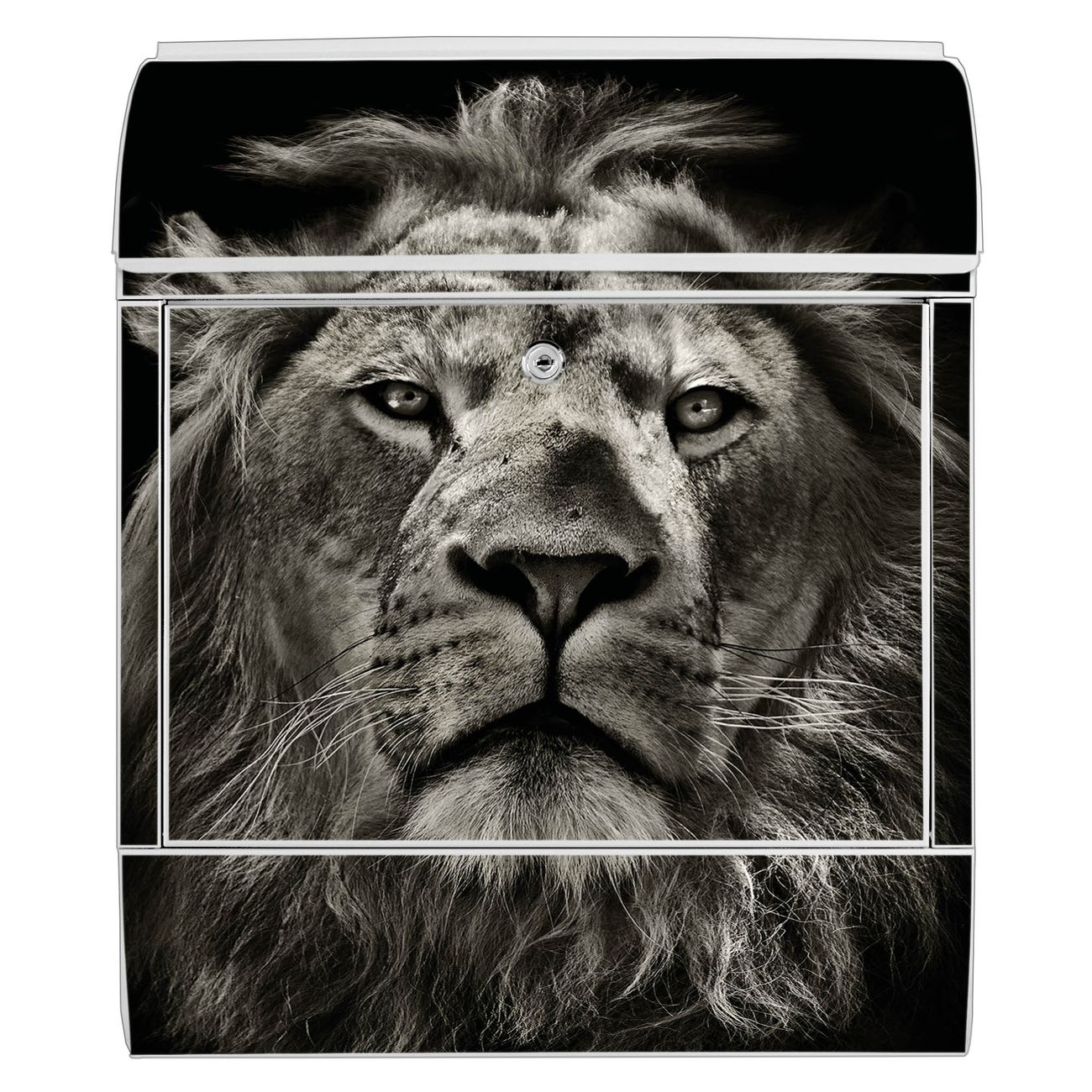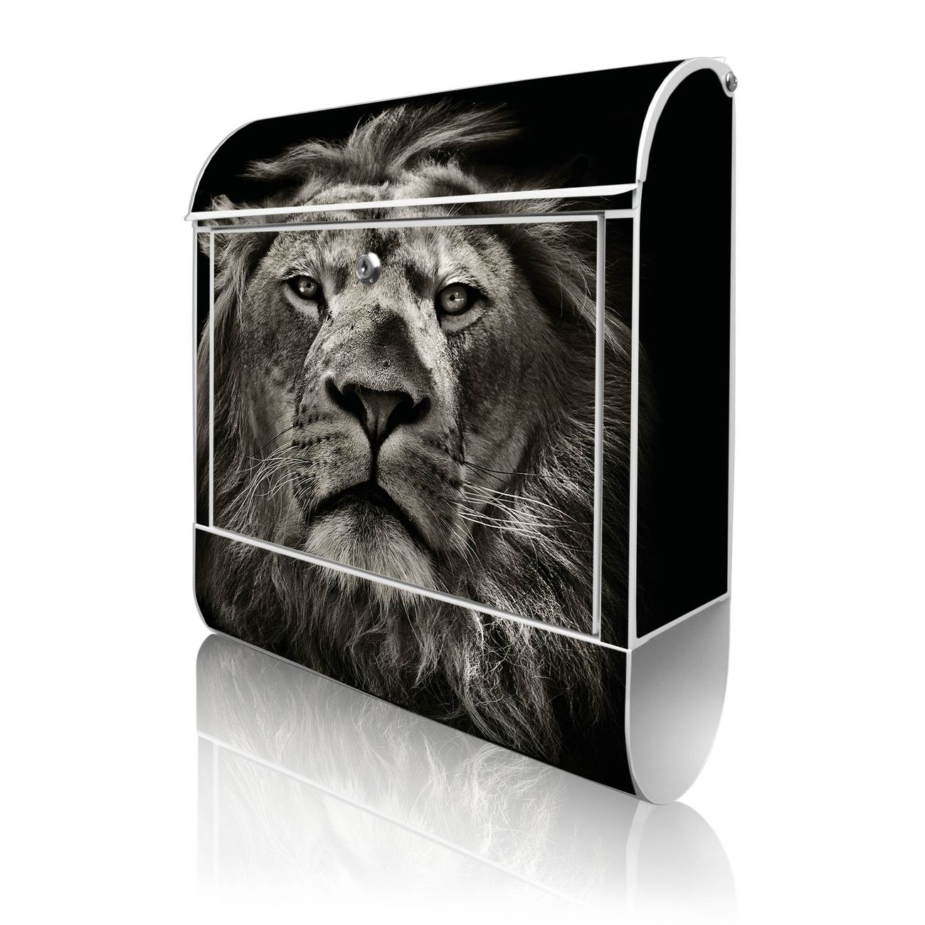 Großer Stahl Briefkasten Motiv Löwe Porträt