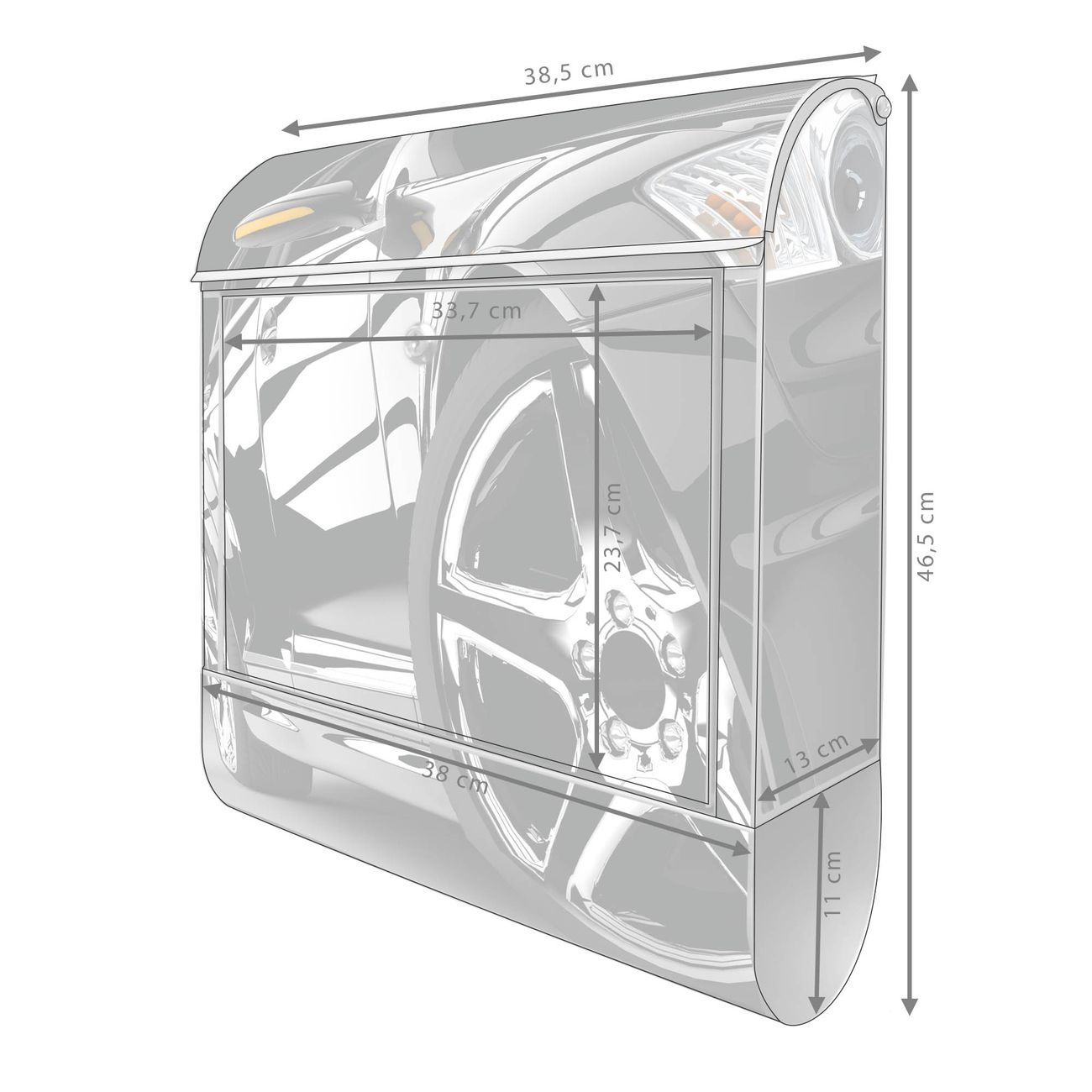 FUNKTION: Der banjado Briefkasten mit Motiv Motiv Luxus Car bietet Ihnen mit seinem Fassungsvermögen genügend Platz auch für große A4 Sendungen. Die integrierte Zeitungsrolle eignet sich hervorragend, um unkompliziert die Tageszeitung zu fassen. Sie finden bei banjado auch den passenden Ständer zum Briefkasten.