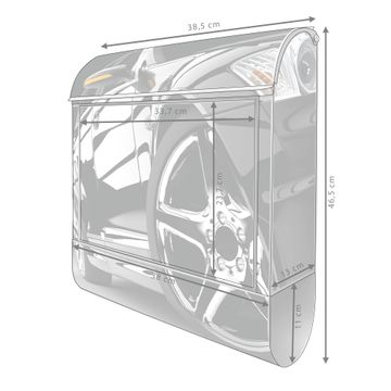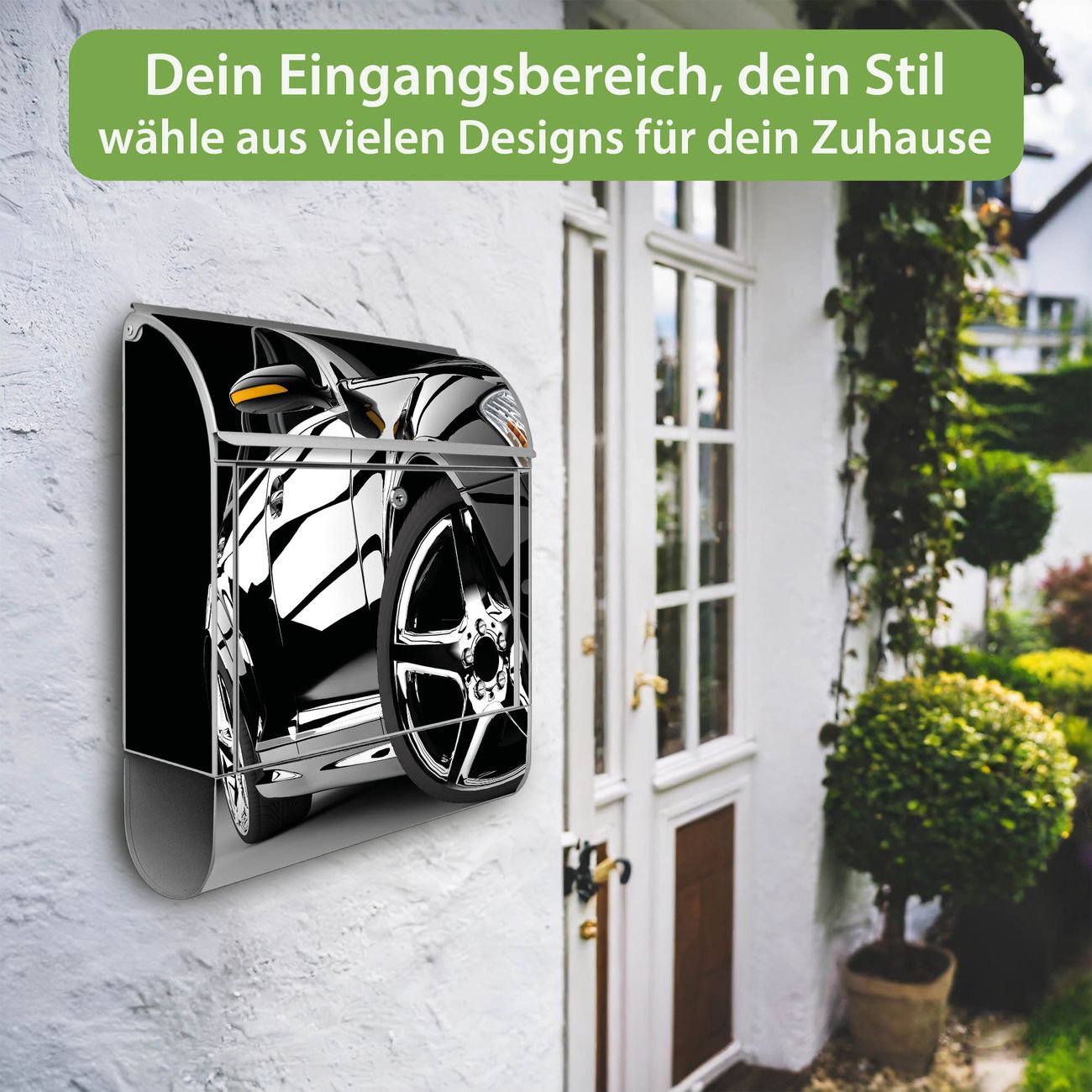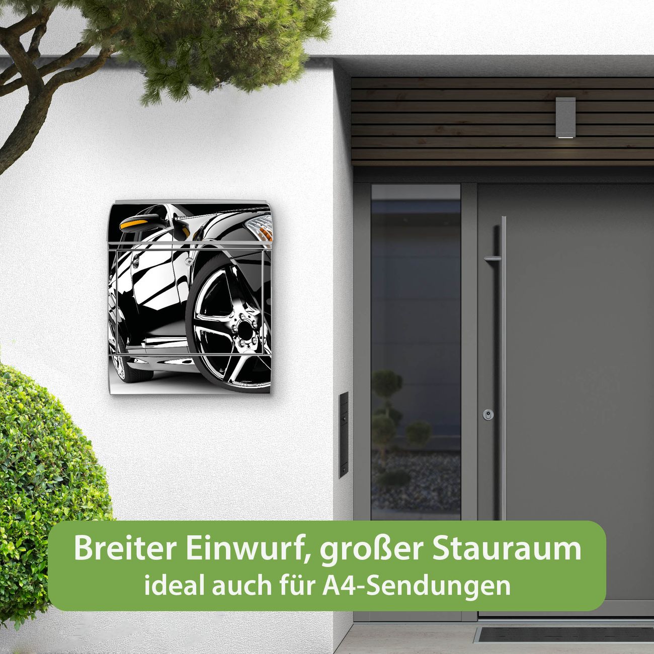 DESIGN: Der Postkasten mit Motiv Motiv Luxus Car hat ein sehr ansprechendes und ausgefallenes Design, damit entlocken Sie Ihren Nachbarn und dem Postboten ein Lächeln. Heben Sie Sich von der tristen grauen Masse ab, ohne auf Funktionalität zu verzichten.