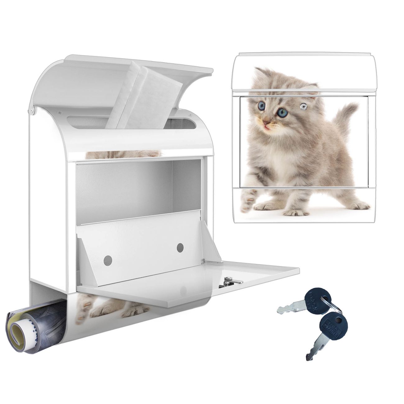 Großer Stahl Briefkasten Motiv Miau
