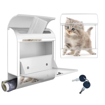 DESIGN: Der Postkasten mit Motiv Motiv Miau hat ein sehr ansprechendes und ausgefallenes Design, damit entlocken Sie Ihren Nachbarn und dem Postboten ein Lächeln. Heben Sie Sich von der tristen grauen Masse ab, ohne auf Funktionalität zu verzichten. DETAILS: Der Postkasten besteht aus pulverbeschichtetem Stahl. Er ist 38x46x12,5cm groß. Das Motiv besteht aus einer wetter- und UV-resistenten Folie, die mit einem Schutzlaminat überzogen ist, sodass der Briefkasten zusätzlich vor Kratzern geschützt ist. Der Briefkasten wird mit Montagematerial, zusätzlich zwei Schlüssel sowie einer Bohrschablone geliefert. NUTZEN: Sie können diesen Briefkasten sowohl als Wandbriefkasten montieren oder einen passenden Ständer kaufen und als Standbriefkasten einbetonieren. Die Größe bietet genügend Platz für Sendungen aller Art, der Einwurf fasst auch größere A4 Sendungen. BANJADO: Ihr Briefkasten wird in Sachsen in einer kleinen Manufaktur von Hand veredelt. Die Motivfolie ist lösungsmittelfrei und schutzlaminiert für einen langen Halt. Wir legen großen Wert auf die Verbindung von Funktionalität und Design. Sie erhalten Handarbeit aus Sachsen.