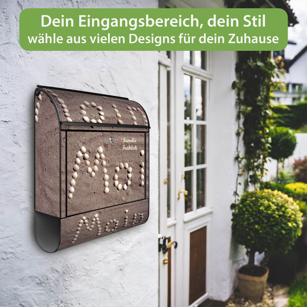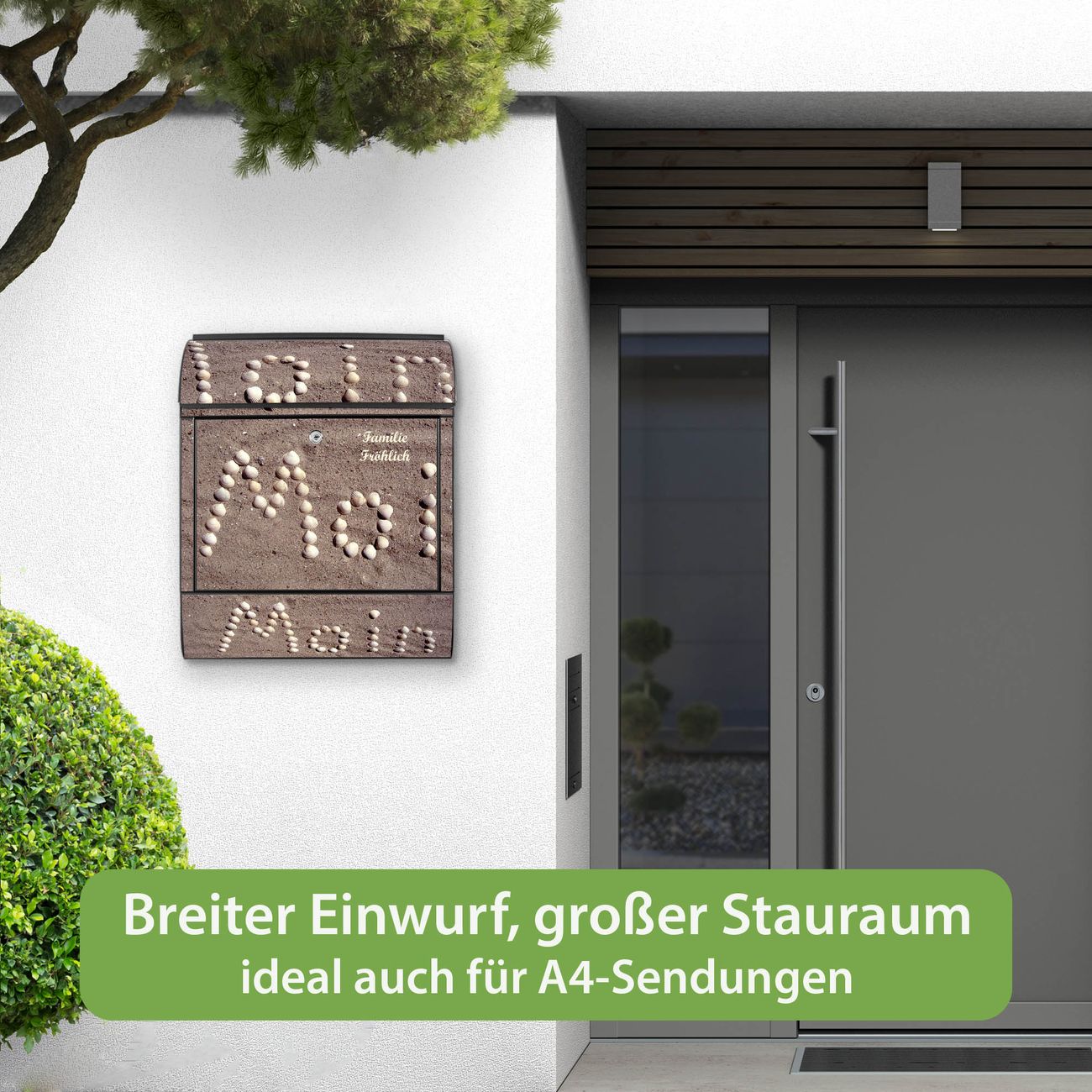 Der Vorschau-Text Familie Fröhlich wird durch Ihren persönlichen Wunschtext ersetzt. Die Schriftart und Farbe bleiben gleich wie in der Vorschau.