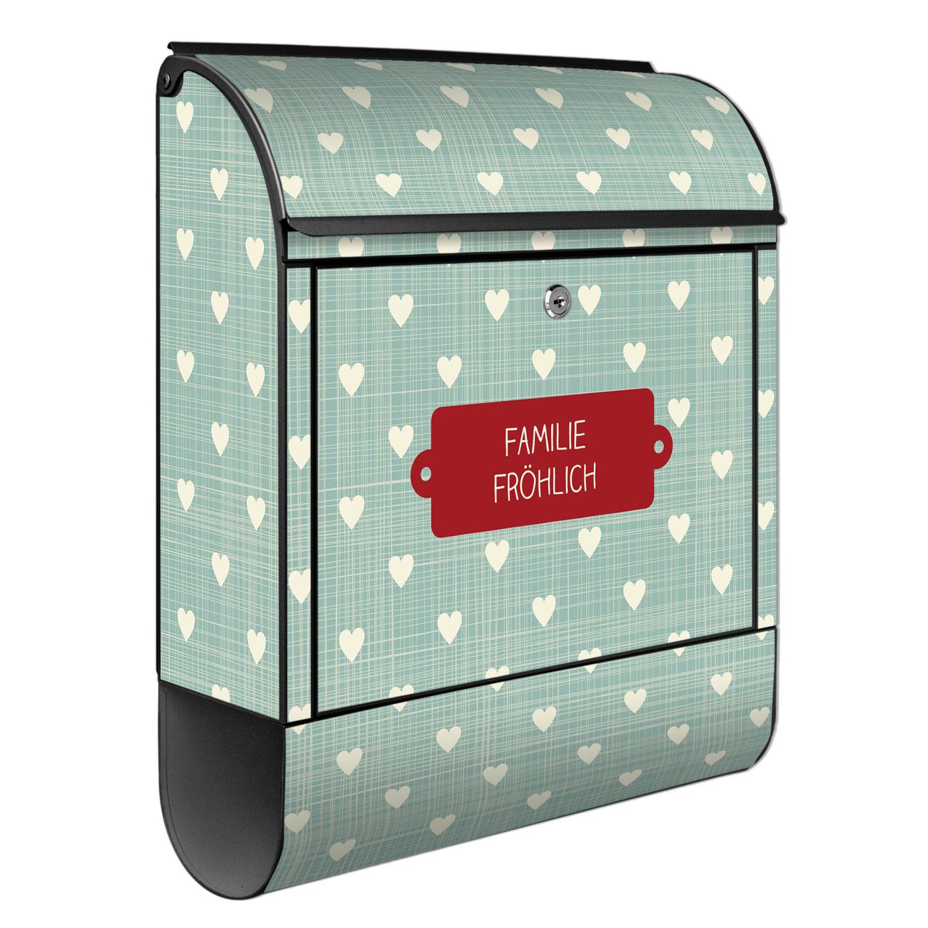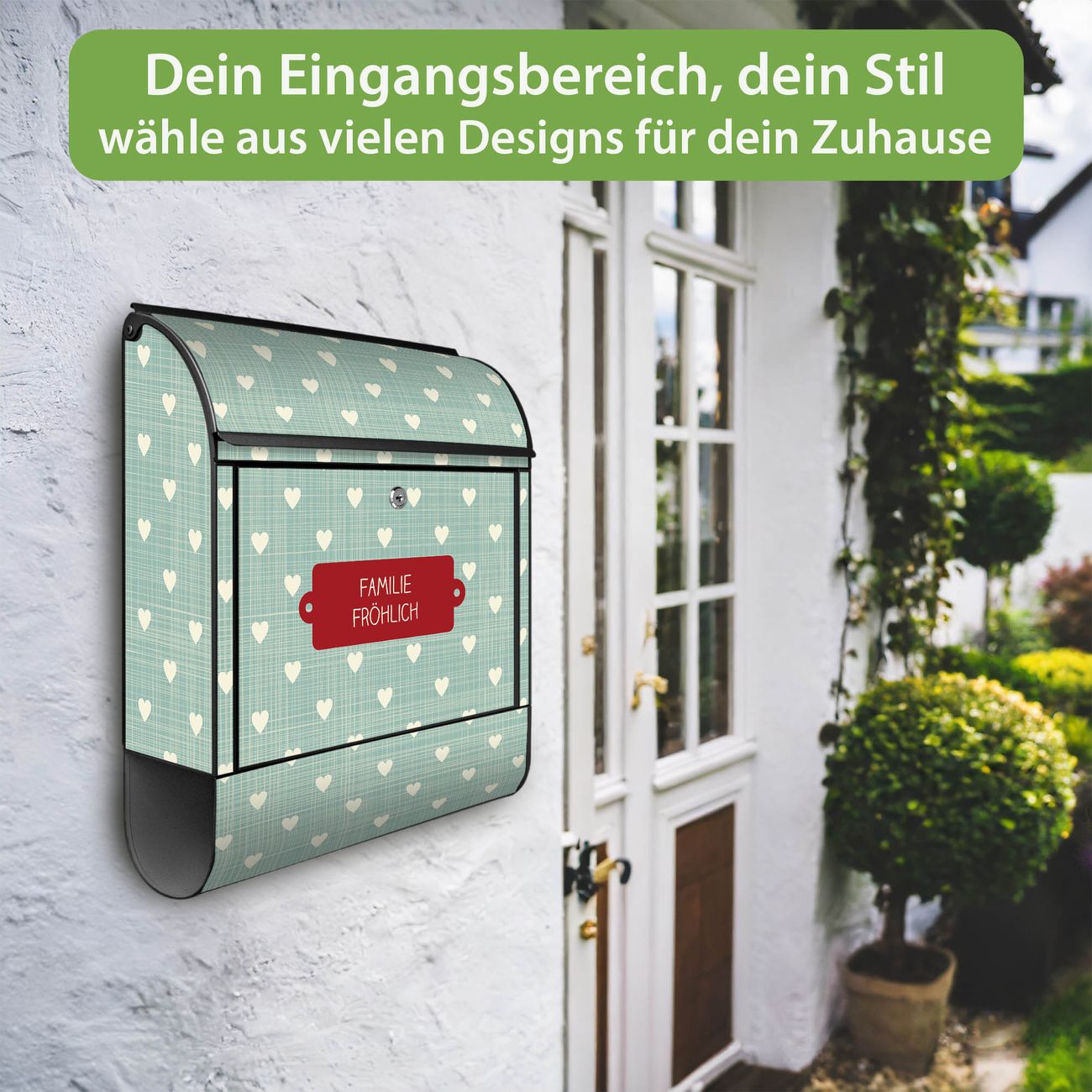 Großer Stahl Briefkasten Motiv Muster Herzen