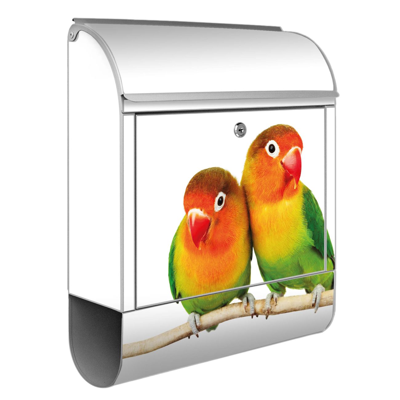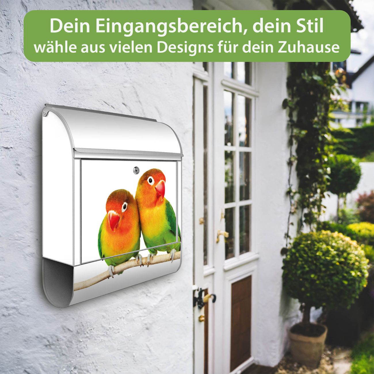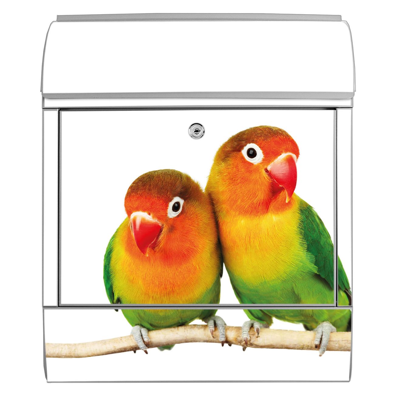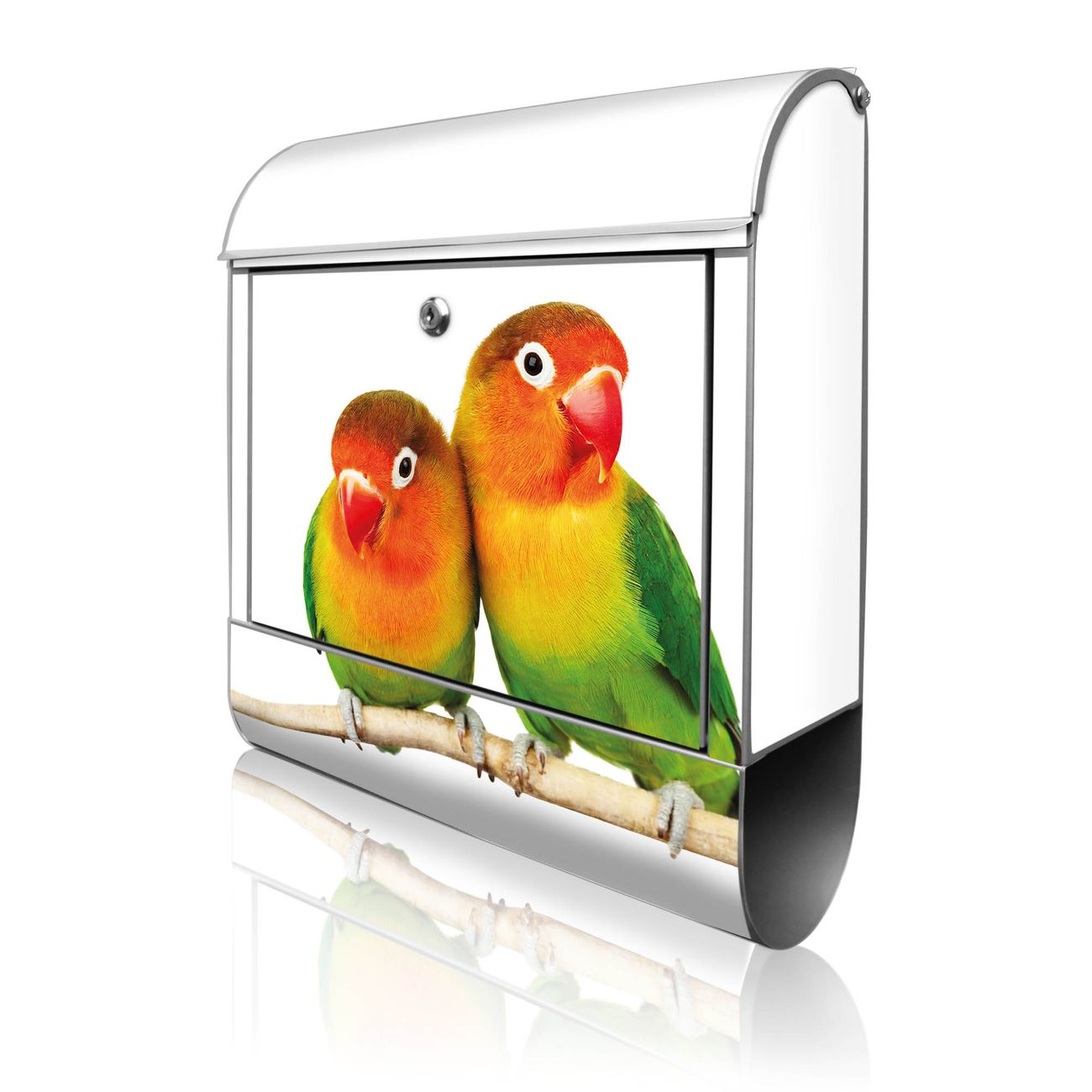 DESIGN: Der Postkasten mit Motiv Motiv Papageien hat ein sehr ansprechendes und ausgefallenes Design, damit entlocken Sie Ihren Nachbarn und dem Postboten ein Lächeln. Heben Sie Sich von der tristen grauen Masse ab, ohne auf Funktionalität zu verzichten. DETAILS: Der Postkasten besteht aus pulverbeschichtetem Stahl. Er ist 38x46x12,5cm groß. Das Motiv besteht aus einer wetter- und UV-resistenten Folie, die mit einem Schutzlaminat überzogen ist, sodass der Briefkasten zusätzlich vor Kratzern geschützt ist. Der Briefkasten wird mit Montagematerial, zusätzlich zwei Schlüssel sowie einer Bohrschablone geliefert. NUTZEN: Sie können diesen Briefkasten sowohl als Wandbriefkasten montieren oder einen passenden Ständer kaufen und als Standbriefkasten einbetonieren. Die Größe bietet genügend Platz für Sendungen aller Art, der Einwurf fasst auch größere A4 Sendungen. BANJADO: Ihr Briefkasten wird in Sachsen in einer kleinen Manufaktur von Hand veredelt. Die Motivfolie ist lösungsmittelfrei und schutzlaminiert für einen langen Halt. Wir legen großen Wert auf die Verbindung von Funktionalität und Design. Sie erhalten Handarbeit aus Sachsen.