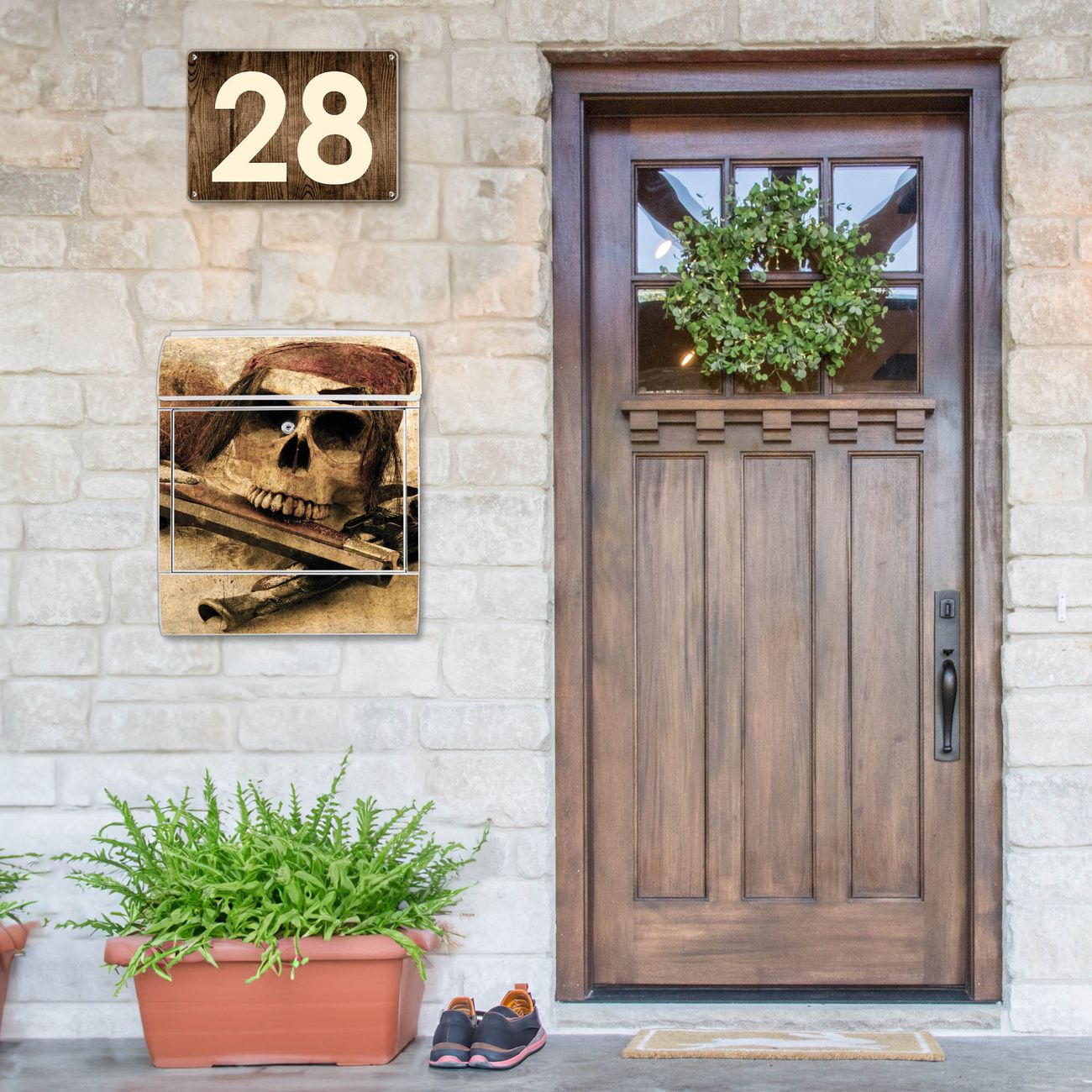 DESIGN: Der Postkasten mit Motiv Pirat hat ein sehr ansprechendes und ausgefallenes Design, damit entlocken Sie Ihren Nachbarn und dem Postboten ein Lächeln. Heben Sie Sich von der tristen grauen Masse ab, ohne auf Funktionalität zu verzichten. DETAILS: Der Postkasten besteht aus pulverbeschichtetem Stahl. Er ist 38x46x12,5cm groß. Das Motiv besteht aus einer wetter- und UV-resistenten Folie, die mit einem Schutzlaminat überzogen ist, sodass der Briefkasten zusätzlich vor Kratzern geschützt ist. Der Briefkasten wird mit Montagematerial, zusätzlich zwei Schlüssel sowie einer Bohrschablone geliefert. NUTZEN: Sie können diesen Briefkasten sowohl als Wandbriefkasten montieren oder einen passenden Ständer kaufen und als Standbriefkasten einbetonieren. Die Größe bietet genügend Platz für Sendungen aller Art, der Einwurf fasst auch größere A4 Sendungen. BANJADO: Ihr Briefkasten wird in Sachsen in einer kleinen Manufaktur von Hand veredelt. Die Motivfolie ist lösungsmittelfrei und schutzlaminiert für einen langen Halt. Wir legen großen Wert auf die Verbindung von Funktionalität und Design. Sie erhalten Handarbeit aus Sachsen.