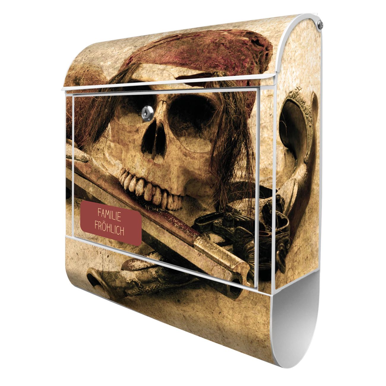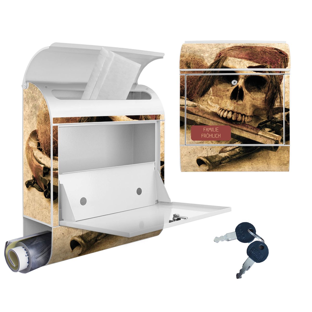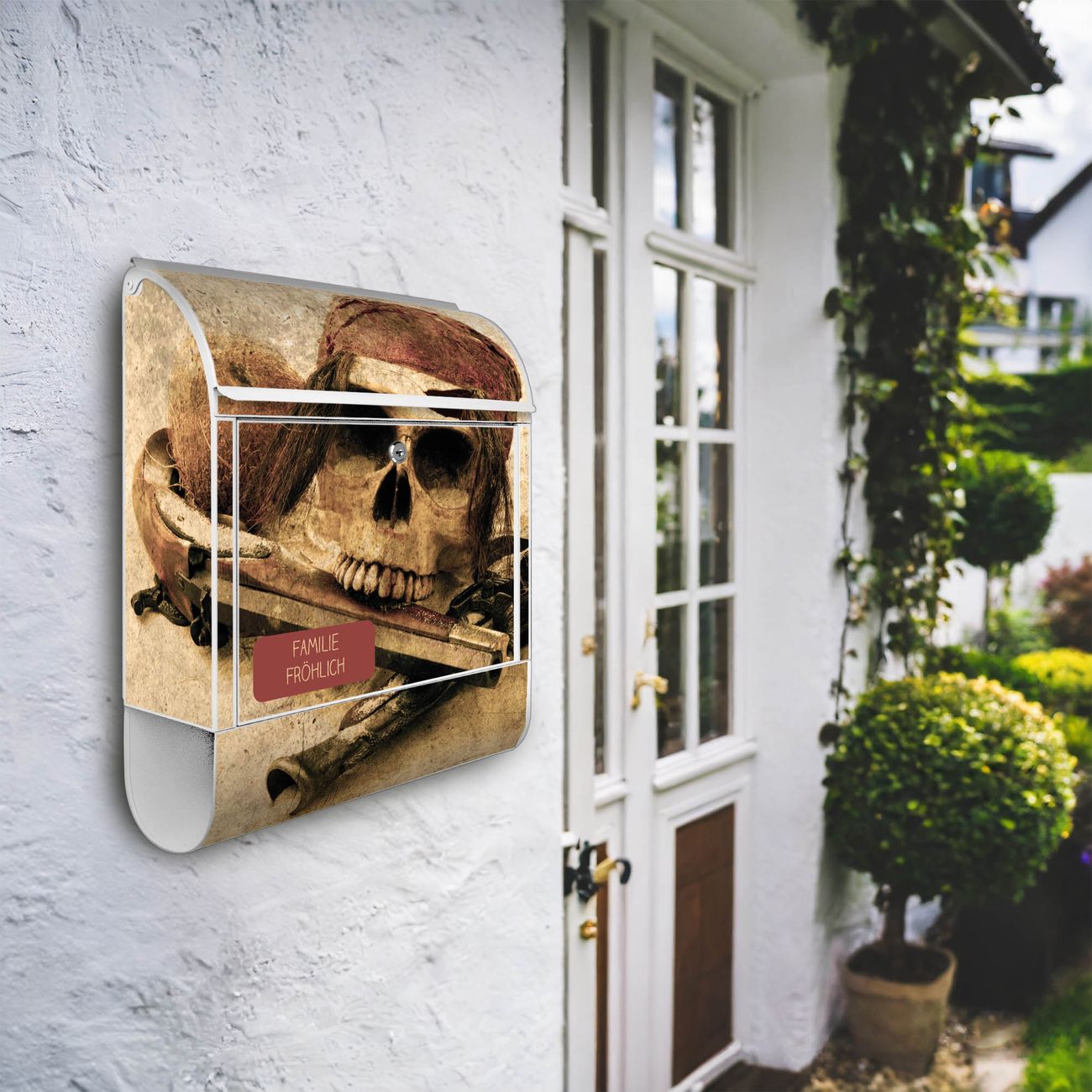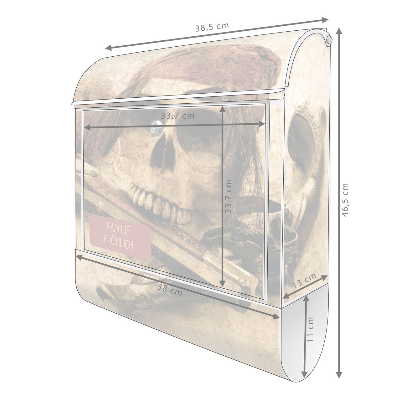 DESIGN: Der Postkasten mit Motiv Pirat hat ein sehr ansprechendes und ausgefallenes Design, damit entlocken Sie Ihren Nachbarn und dem Postboten ein Lächeln. Heben Sie Sich von der tristen grauen Masse ab, ohne auf Funktionalität zu verzichten. DETAILS: Der Postkasten besteht aus pulverbeschichtetem Stahl. Er ist 38x46x12,5cm groß. Das Motiv besteht aus einer wetter- und UV-resistenten Folie, die mit einem Schutzlaminat überzogen ist, sodass der Briefkasten zusätzlich vor Kratzern geschützt ist. Der Briefkasten wird mit Montagematerial, zusätzlich zwei Schlüssel sowie einer Bohrschablone geliefert. NUTZEN: Sie können diesen Briefkasten sowohl als Wandbriefkasten montieren oder einen passenden Ständer kaufen und als Standbriefkasten einbetonieren. Die Größe bietet genügend Platz für Sendungen aller Art, der Einwurf fasst auch größere A4 Sendungen. BANJADO: Ihr Briefkasten wird in Sachsen in einer kleinen Manufaktur von Hand veredelt. Die Motivfolie ist lösungsmittelfrei und schutzlaminiert für einen langen Halt. Wir legen großen Wert auf die Verbindung von Funktionalität und Design. Sie erhalten Handarbeit aus Sachsen.