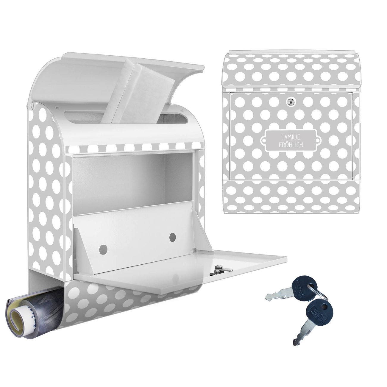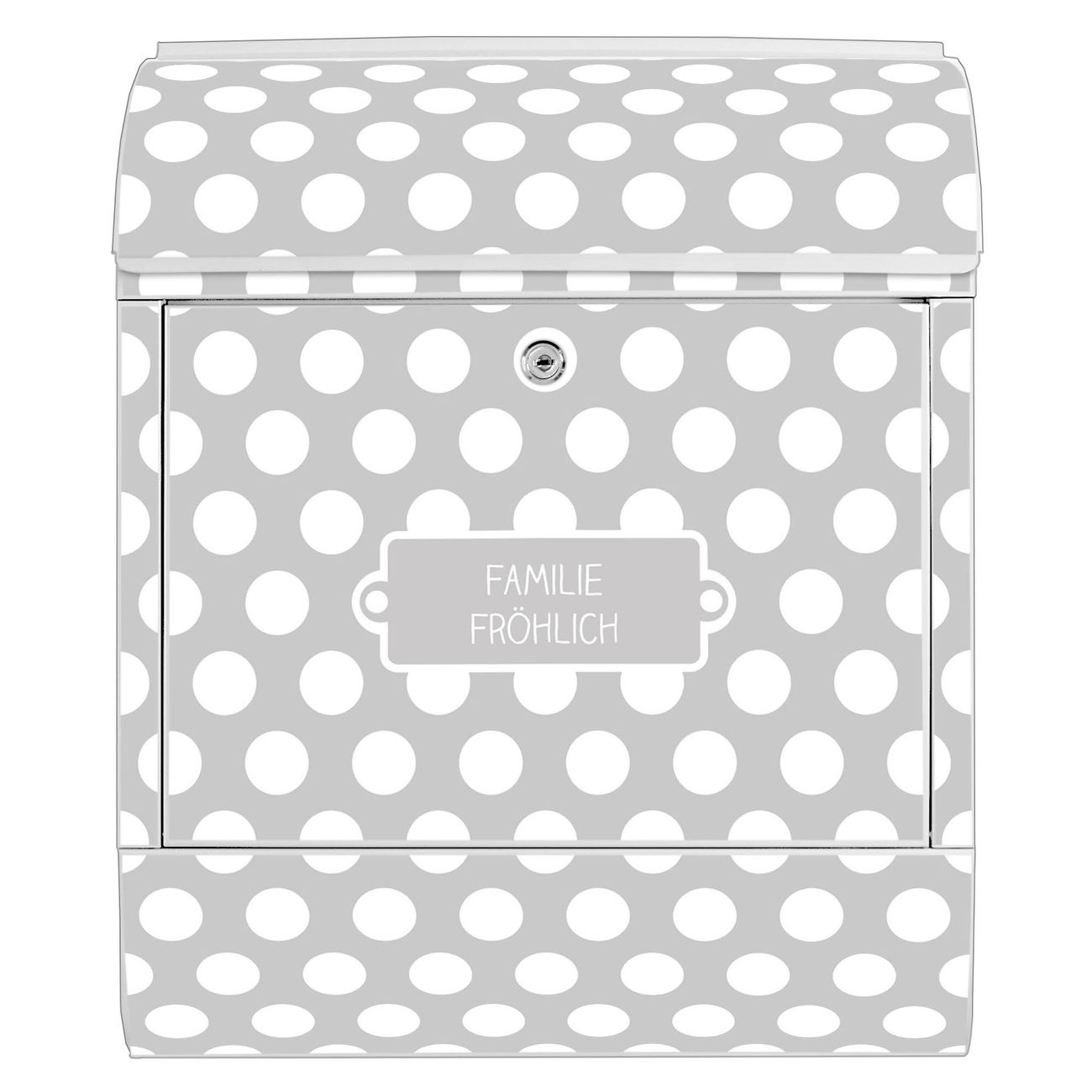 Großer Stahl Briefkasten Motiv Punkte Grau