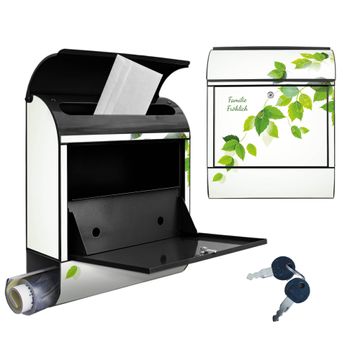 DESIGN: Der Postkasten mit Motiv Motiv Ranke Gelb Weiß hat ein sehr ansprechendes und ausgefallenes Design, damit entlocken Sie Ihren Nachbarn und dem Postboten ein Lächeln. Heben Sie Sich von der tristen grauen Masse ab, ohne auf Funktionalität zu verzichten. DETAILS: Der Postkasten besteht aus pulverbeschichtetem Stahl. Er ist 38x46x12,5cm groß. Das Motiv besteht aus einer wetter- und UV-resistenten Folie, die mit einem Schutzlaminat überzogen ist, sodass der Briefkasten zusätzlich vor Kratzern geschützt ist. Der Briefkasten wird mit Montagematerial, zusätzlich zwei Schlüssel sowie einer Bohrschablone geliefert. NUTZEN: Sie können diesen Briefkasten sowohl als Wandbriefkasten montieren oder einen passenden Ständer kaufen und als Standbriefkasten einbetonieren. Die Größe bietet genügend Platz für Sendungen aller Art, der Einwurf fasst auch größere A4 Sendungen. BANJADO: Ihr Briefkasten wird in Sachsen in einer kleinen Manufaktur von Hand veredelt. Die Motivfolie ist lösungsmittelfrei und schutzlaminiert für einen langen Halt. Wir legen großen Wert auf die Verbindung von Funktionalität und Design. Sie erhalten Handarbeit aus Sachsen.