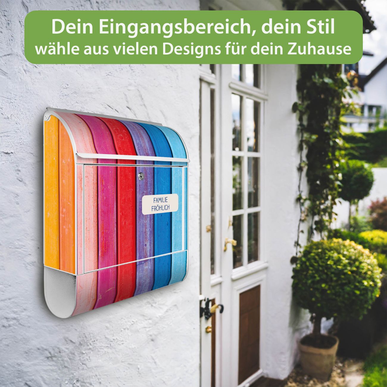 Großer Stahl Briefkasten Motiv Regenbogenfarben