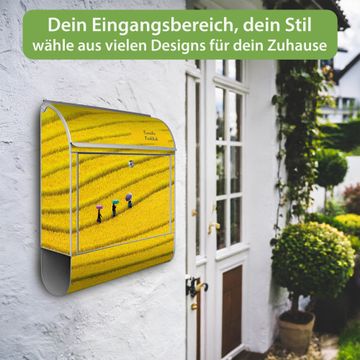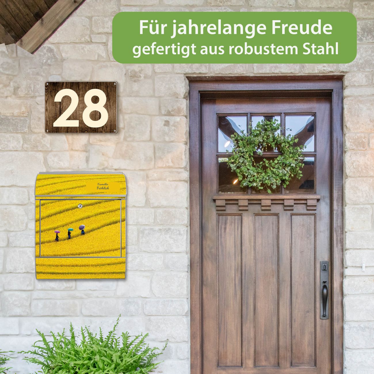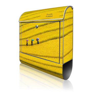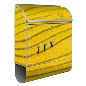 DESIGN: Der Postkasten mit Motiv Motiv Reisfeld Vietnam hat ein sehr ansprechendes und ausgefallenes Design, damit entlocken Sie Ihren Nachbarn und dem Postboten ein Lächeln. Heben Sie Sich von der tristen grauen Masse ab, ohne auf Funktionalität zu verzichten. DETAILS: Der Postkasten besteht aus pulverbeschichtetem Stahl. Er ist 38x46x12,5cm groß. Das Motiv besteht aus einer wetter- und UV-resistenten Folie, die mit einem Schutzlaminat überzogen ist, sodass der Briefkasten zusätzlich vor Kratzern geschützt ist. Der Briefkasten wird mit Montagematerial, zusätzlich zwei Schlüssel sowie einer Bohrschablone geliefert. NUTZEN: Sie können diesen Briefkasten sowohl als Wandbriefkasten montieren oder einen passenden Ständer kaufen und als Standbriefkasten einbetonieren. Die Größe bietet genügend Platz für Sendungen aller Art, der Einwurf fasst auch größere A4 Sendungen. BANJADO: Ihr Briefkasten wird in Sachsen in einer kleinen Manufaktur von Hand veredelt. Die Motivfolie ist lösungsmittelfrei und schutzlaminiert für einen langen Halt. Wir legen großen Wert auf die Verbindung von Funktionalität und Design. Sie erhalten Handarbeit aus Sachsen.