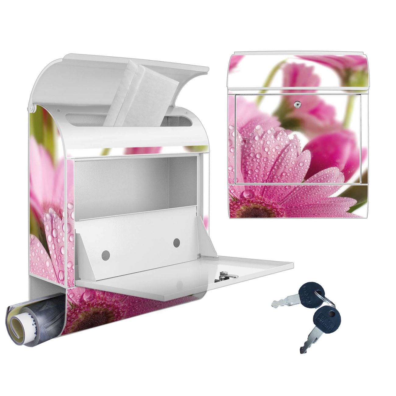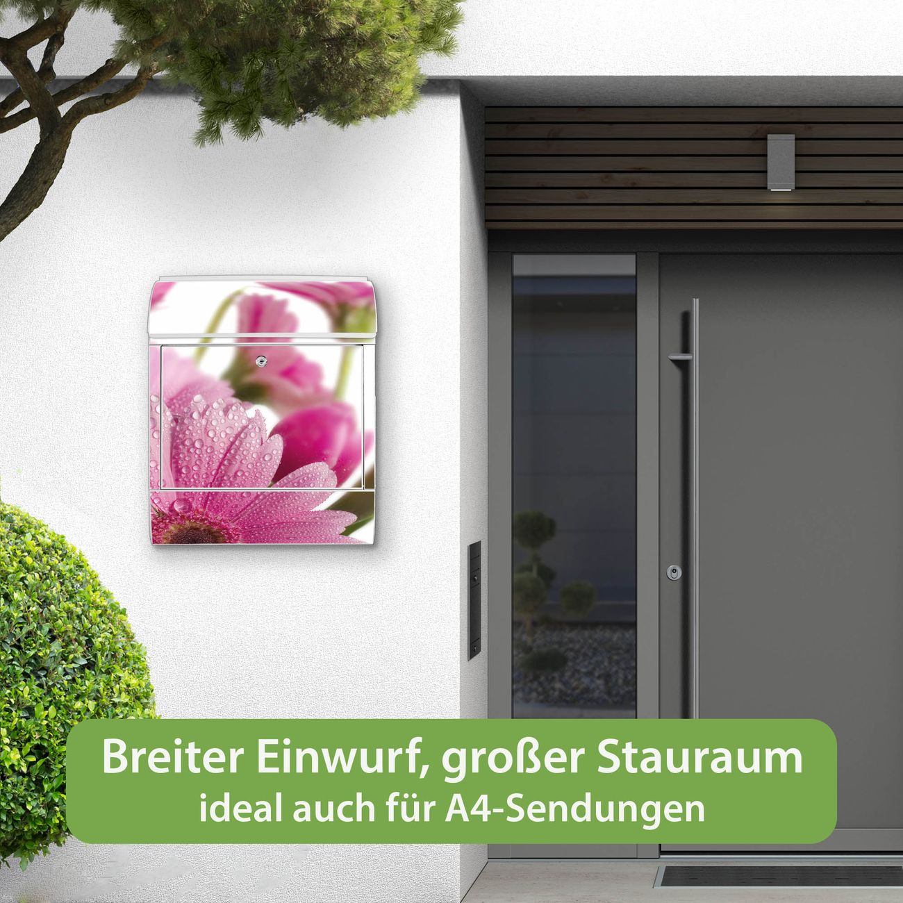 Großer Stahl Briefkasten Motiv Rosa Gerbera