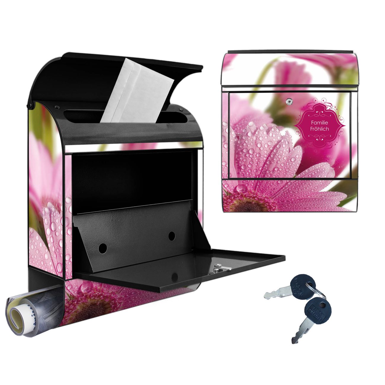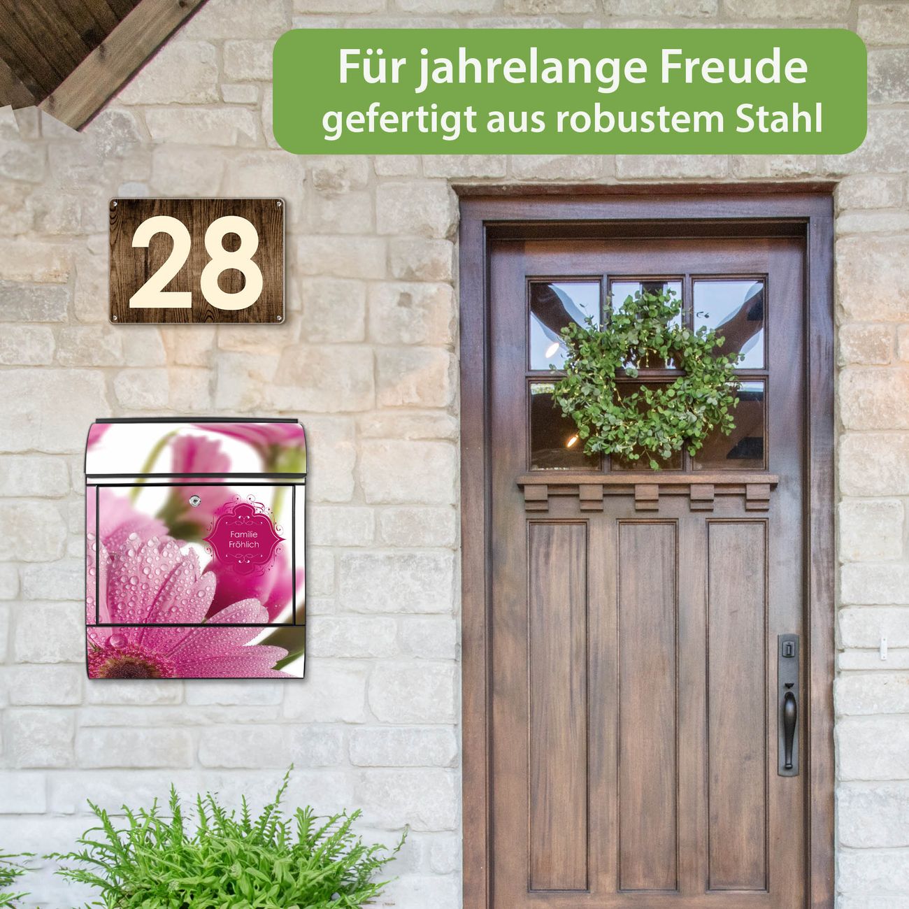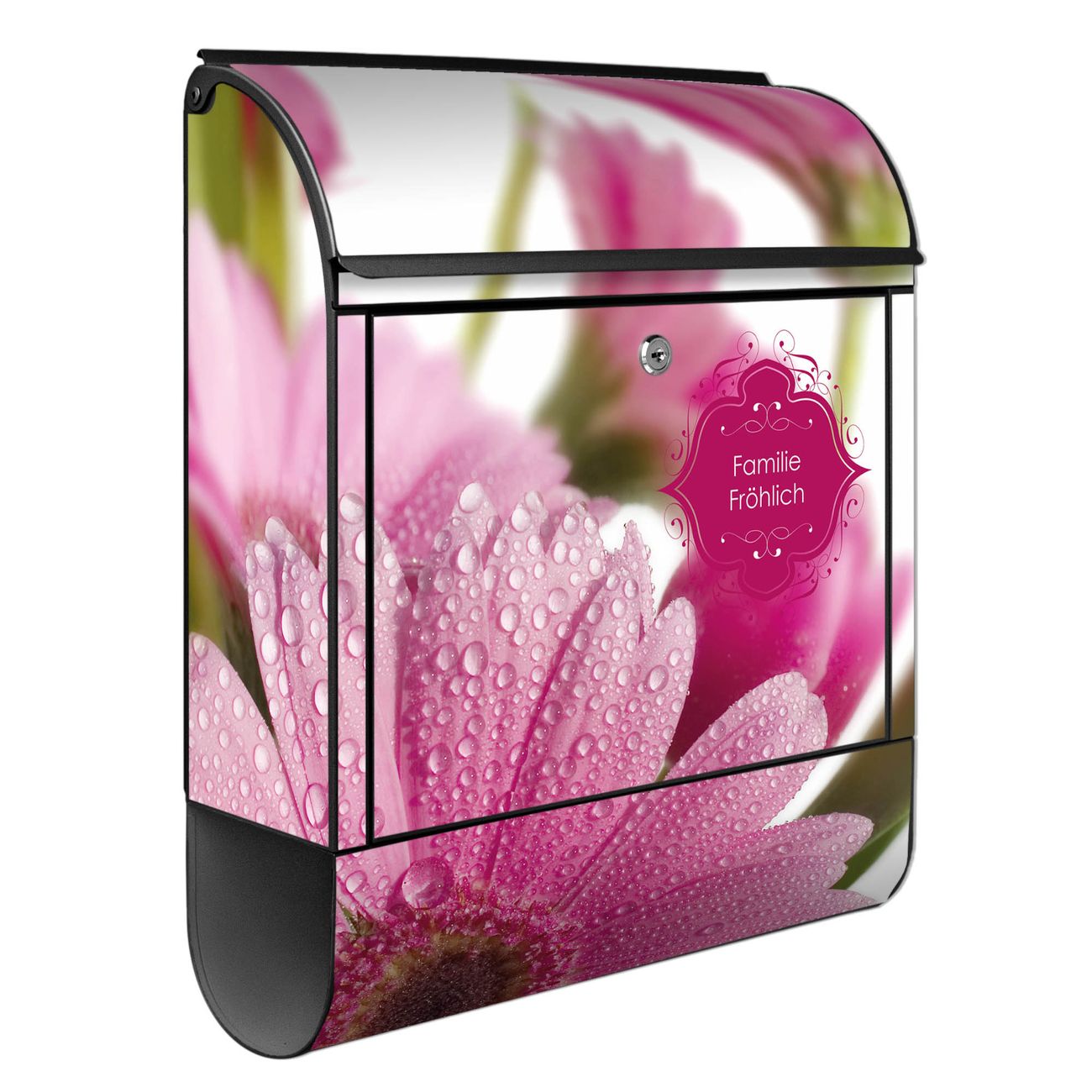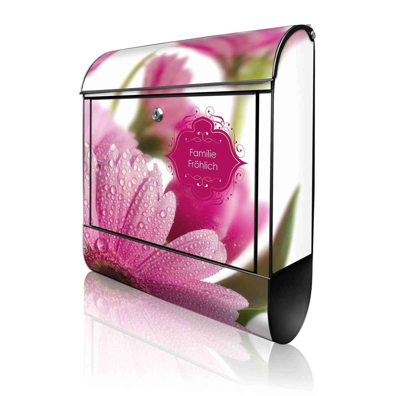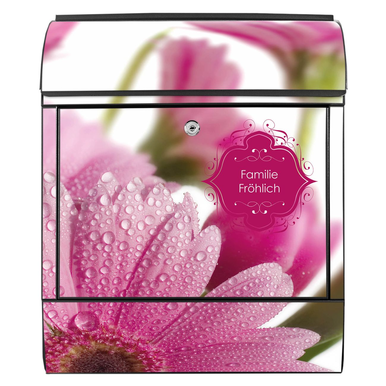 Großer Stahl Briefkasten Motiv Rosa Gerbera