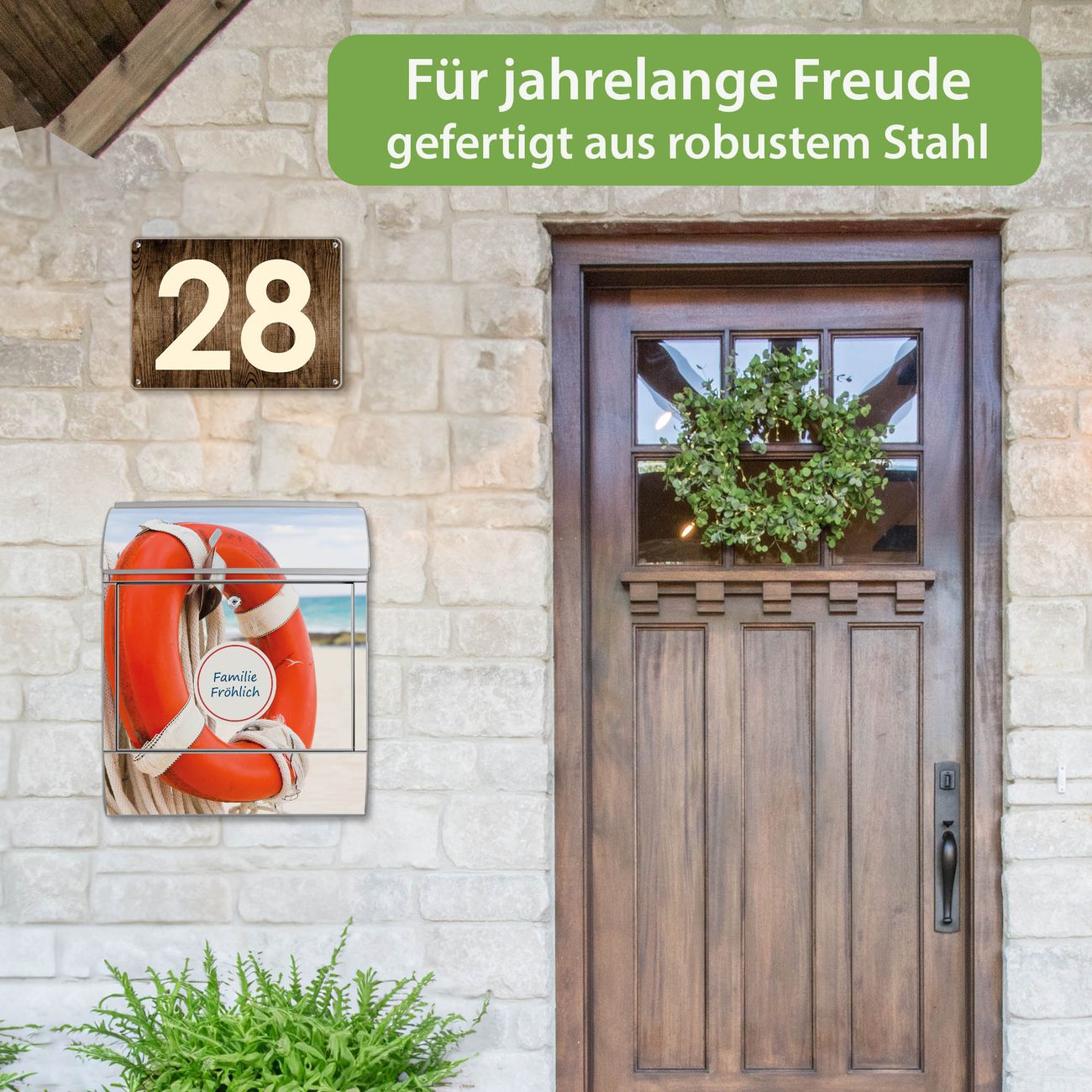 Großer Stahl Briefkasten Motiv Roter Rettungsring