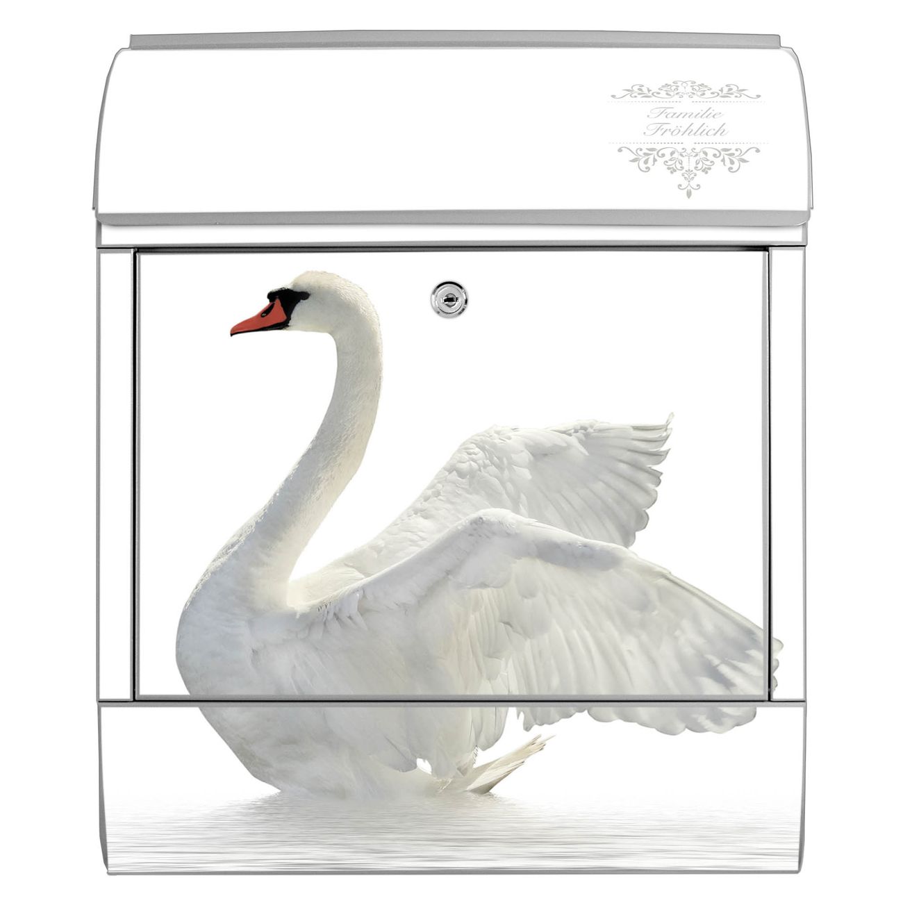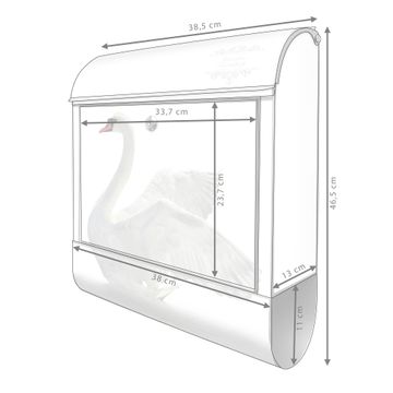 DESIGN: Der Postkasten mit Motiv Motiv Schwan hat ein sehr ansprechendes und ausgefallenes Design, damit entlocken Sie Ihren Nachbarn und dem Postboten ein Lächeln. Heben Sie Sich von der tristen grauen Masse ab, ohne auf Funktionalität zu verzichten. DETAILS: Der Postkasten besteht aus pulverbeschichtetem Stahl. Er ist 38x46x12,5cm groß. Das Motiv besteht aus einer wetter- und UV-resistenten Folie, die mit einem Schutzlaminat überzogen ist, sodass der Briefkasten zusätzlich vor Kratzern geschützt ist. Der Briefkasten wird mit Montagematerial, zusätzlich zwei Schlüssel sowie einer Bohrschablone geliefert. NUTZEN: Sie können diesen Briefkasten sowohl als Wandbriefkasten montieren oder einen passenden Ständer kaufen und als Standbriefkasten einbetonieren. Die Größe bietet genügend Platz für Sendungen aller Art, der Einwurf fasst auch größere A4 Sendungen. BANJADO: Ihr Briefkasten wird in Sachsen in einer kleinen Manufaktur von Hand veredelt. Die Motivfolie ist lösungsmittelfrei und schutzlaminiert für einen langen Halt. Wir legen großen Wert auf die Verbindung von Funktionalität und Design. Sie erhalten Handarbeit aus Sachsen.