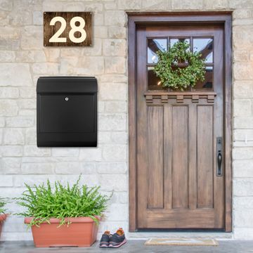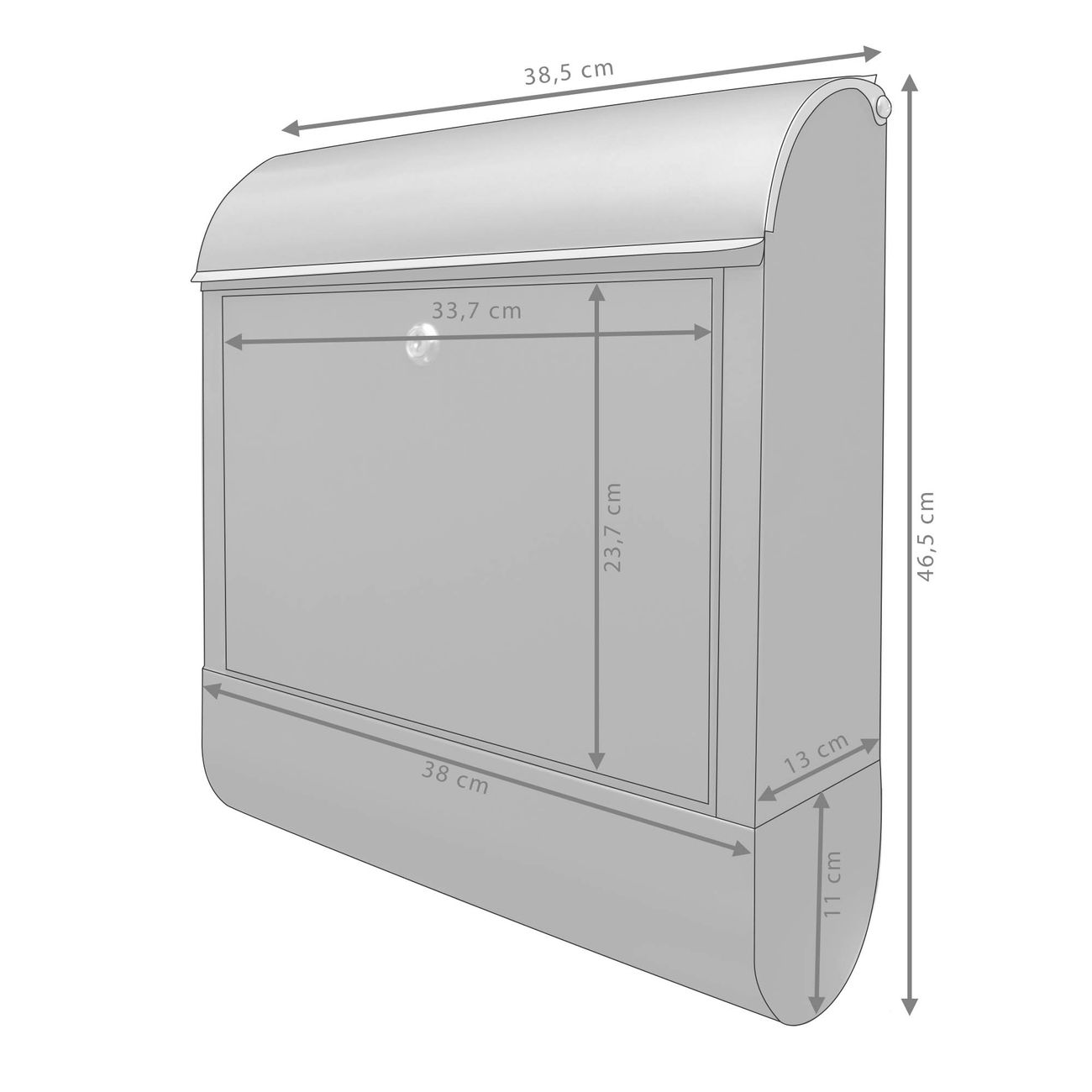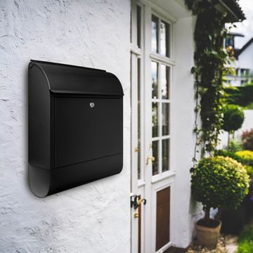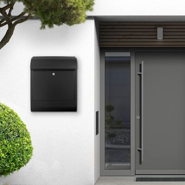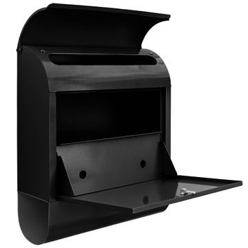 FUNKTION: Der schwarze banjado Briefkasten bietet Ihnen mit seinem Fassungsvermögen genügend Platz auch für große A4 Sendungen. Die integrierte Zeitungsrolle eignet sich hervorragend, um unkompliziert die Tageszeitung zu fassen. Sie finden bei banjado auch den passenden Ständer oder eine Zaunbefestigung zum Briefkasten. DESIGN: Der Postkasten mit hat ein sehr ansprechendes und ausgefallenes Design, damit entlocken Sie Ihren Nachbarn und dem Postboten ein Lächeln. Heben Sie Sich von der tristen grauen Masse ab, ohne auf Funktionalität zu verzichten. DETAILS: Der Postkasten besteht aus schwarz pulverbeschichtetem Stahl. Er ist 38x47x13cm groß. Der Briefkasten wird mit Montagematerial und zwei Schlüsseln. NUTZEN: Sie können diesen Briefkasten sowohl als Zaun- oder Wandbriefkasten montieren oder einen passenden Ständer kaufen und als Standbriefkasten einbetonieren. Die Größe bietet genügend Platz für Sendungen aller Art, der Einwurf fasst auch größere A4 Sendungen.