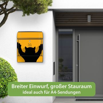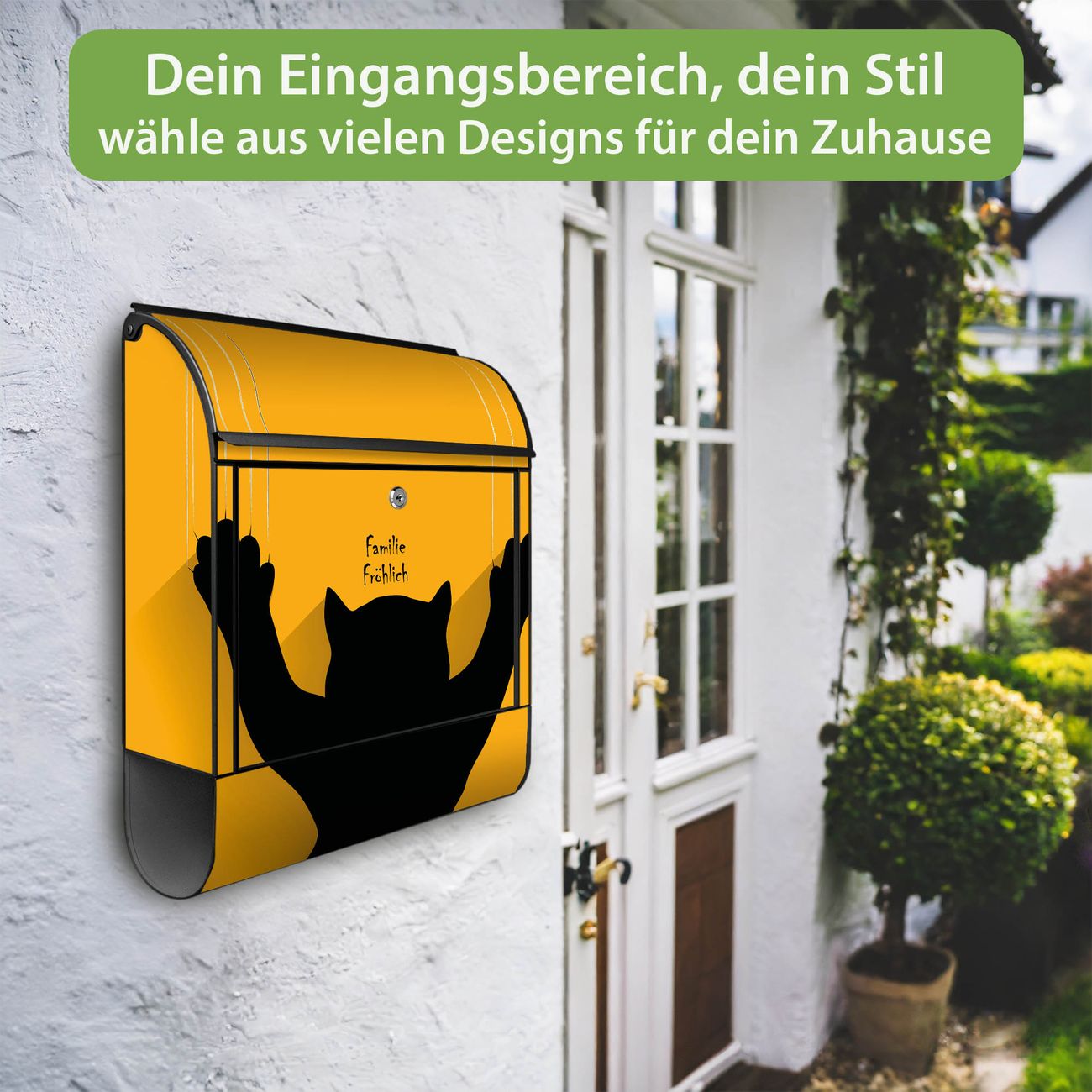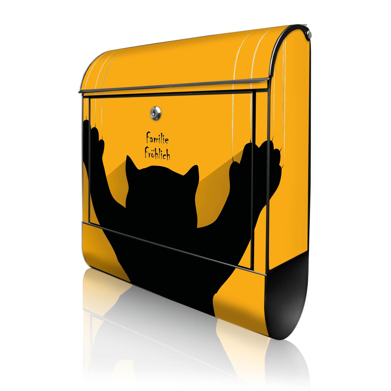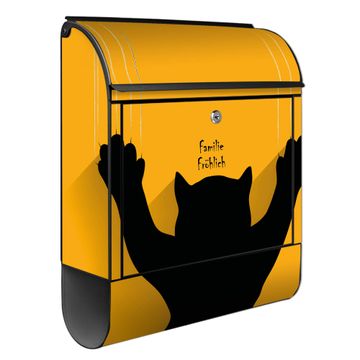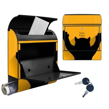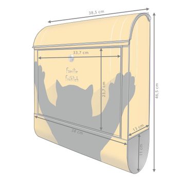 DESIGN: Der Postkasten mit Motiv Motiv Scratch hat ein sehr ansprechendes und ausgefallenes Design, damit entlocken Sie Ihren Nachbarn und dem Postboten ein Lächeln. Heben Sie Sich von der tristen grauen Masse ab, ohne auf Funktionalität zu verzichten. DETAILS: Der Postkasten besteht aus pulverbeschichtetem Stahl. Er ist 38x46x12,5cm groß. Das Motiv besteht aus einer wetter- und UV-resistenten Folie, die mit einem Schutzlaminat überzogen ist, sodass der Briefkasten zusätzlich vor Kratzern geschützt ist. Der Briefkasten wird mit Montagematerial, zusätzlich zwei Schlüssel sowie einer Bohrschablone geliefert. NUTZEN: Sie können diesen Briefkasten sowohl als Wandbriefkasten montieren oder einen passenden Ständer kaufen und als Standbriefkasten einbetonieren. Die Größe bietet genügend Platz für Sendungen aller Art, der Einwurf fasst auch größere A4 Sendungen. BANJADO: Ihr Briefkasten wird in Sachsen in einer kleinen Manufaktur von Hand veredelt. Die Motivfolie ist lösungsmittelfrei und schutzlaminiert für einen langen Halt. Wir legen großen Wert auf die Verbindung von Funktionalität und Design. Sie erhalten Handarbeit aus Sachsen.