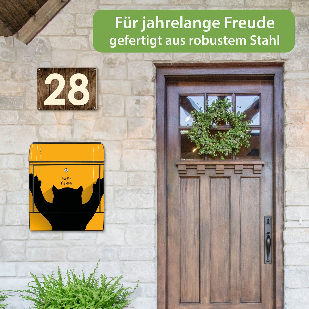 Der Vorschau-Text Familie Fröhlich wird durch Ihren persönlichen Wunschtext ersetzt. Die Schriftart und Farbe bleiben gleich wie in der Vorschau.