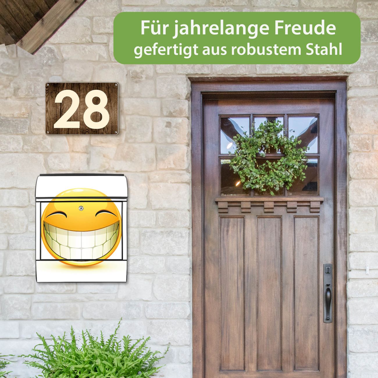 Großer Stahl Briefkasten Motiv Smile