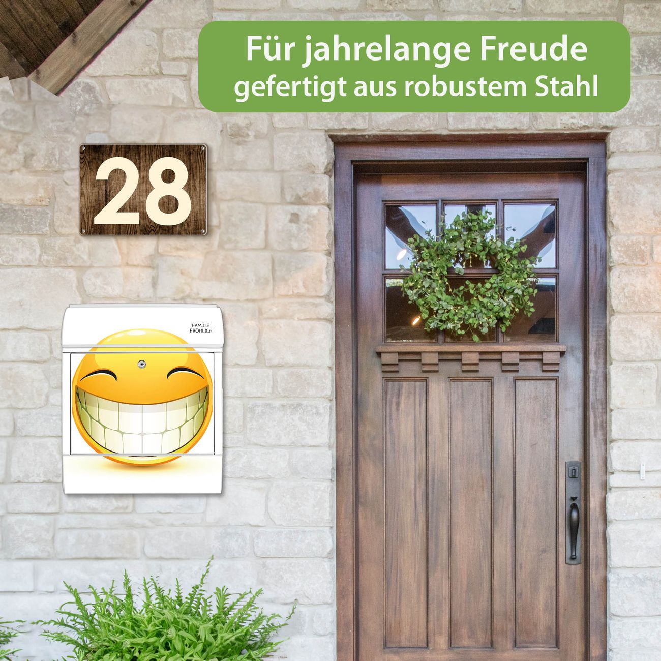 Großer Stahl Briefkasten Motiv Smile