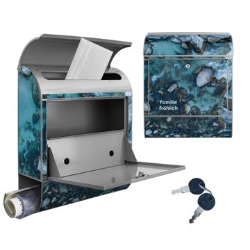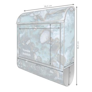 DESIGN: Der Postkasten mit Motiv Motiv Steinbucht 2 hat ein sehr ansprechendes und ausgefallenes Design, damit entlocken Sie Ihren Nachbarn und dem Postboten ein Lächeln. Heben Sie Sich von der tristen grauen Masse ab, ohne auf Funktionalität zu verzichten. DETAILS: Der Postkasten besteht aus pulverbeschichtetem Stahl. Er ist 38x46x12,5cm groß. Das Motiv besteht aus einer wetter- und UV-resistenten Folie, die mit einem Schutzlaminat überzogen ist, sodass der Briefkasten zusätzlich vor Kratzern geschützt ist. Der Briefkasten wird mit Montagematerial, zusätzlich zwei Schlüssel sowie einer Bohrschablone geliefert. NUTZEN: Sie können diesen Briefkasten sowohl als Wandbriefkasten montieren oder einen passenden Ständer kaufen und als Standbriefkasten einbetonieren. Die Größe bietet genügend Platz für Sendungen aller Art, der Einwurf fasst auch größere A4 Sendungen. BANJADO: Ihr Briefkasten wird in Sachsen in einer kleinen Manufaktur von Hand veredelt. Die Motivfolie ist lösungsmittelfrei und schutzlaminiert für einen langen Halt. Wir legen großen Wert auf die Verbindung von Funktionalität und Design. Sie erhalten Handarbeit aus Sachsen.