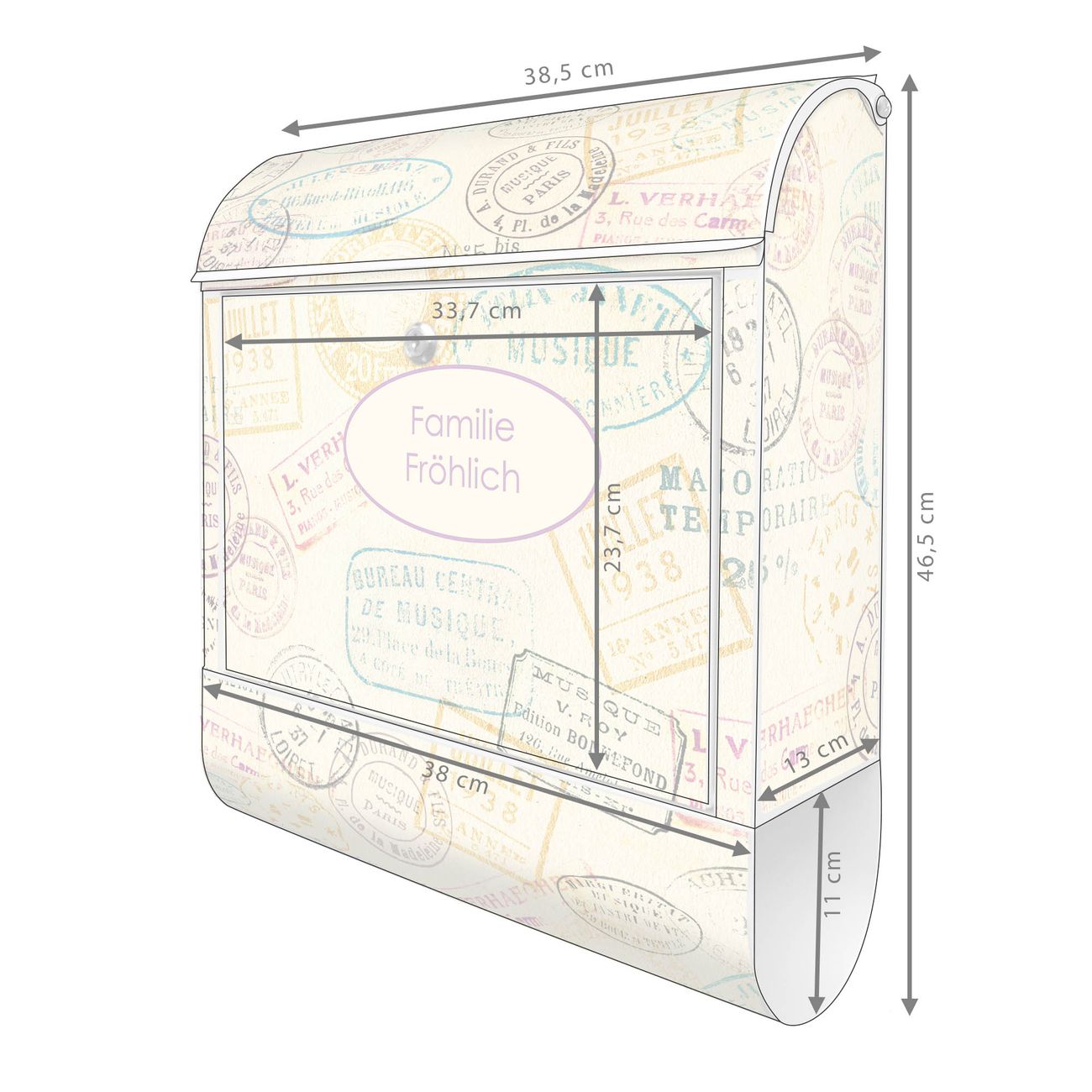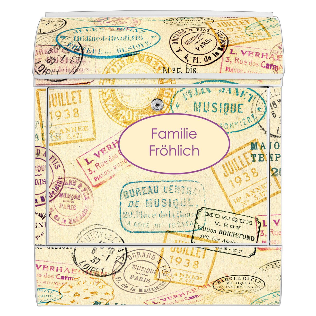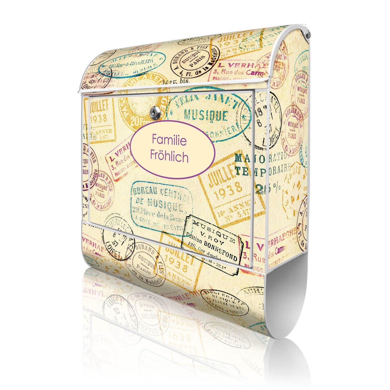 Großer Stahl Briefkasten Motiv Stempel