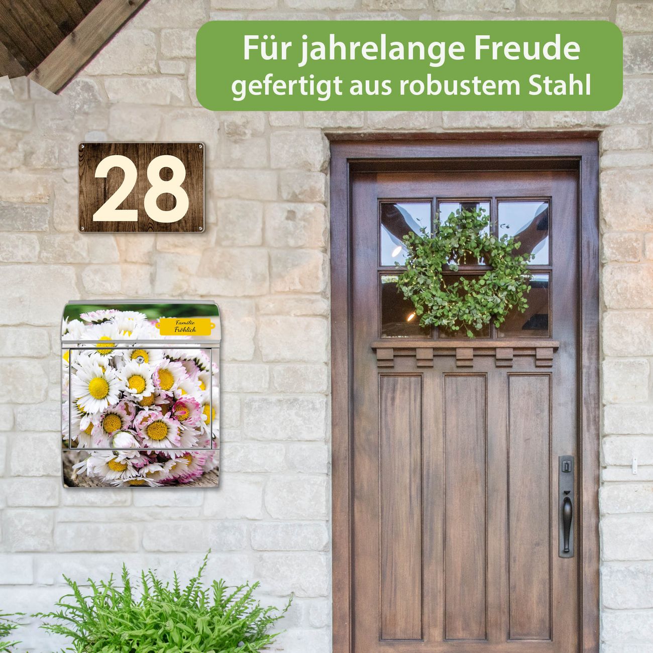 Großer Stahl Briefkasten Motiv Strauß Gänseblümchen