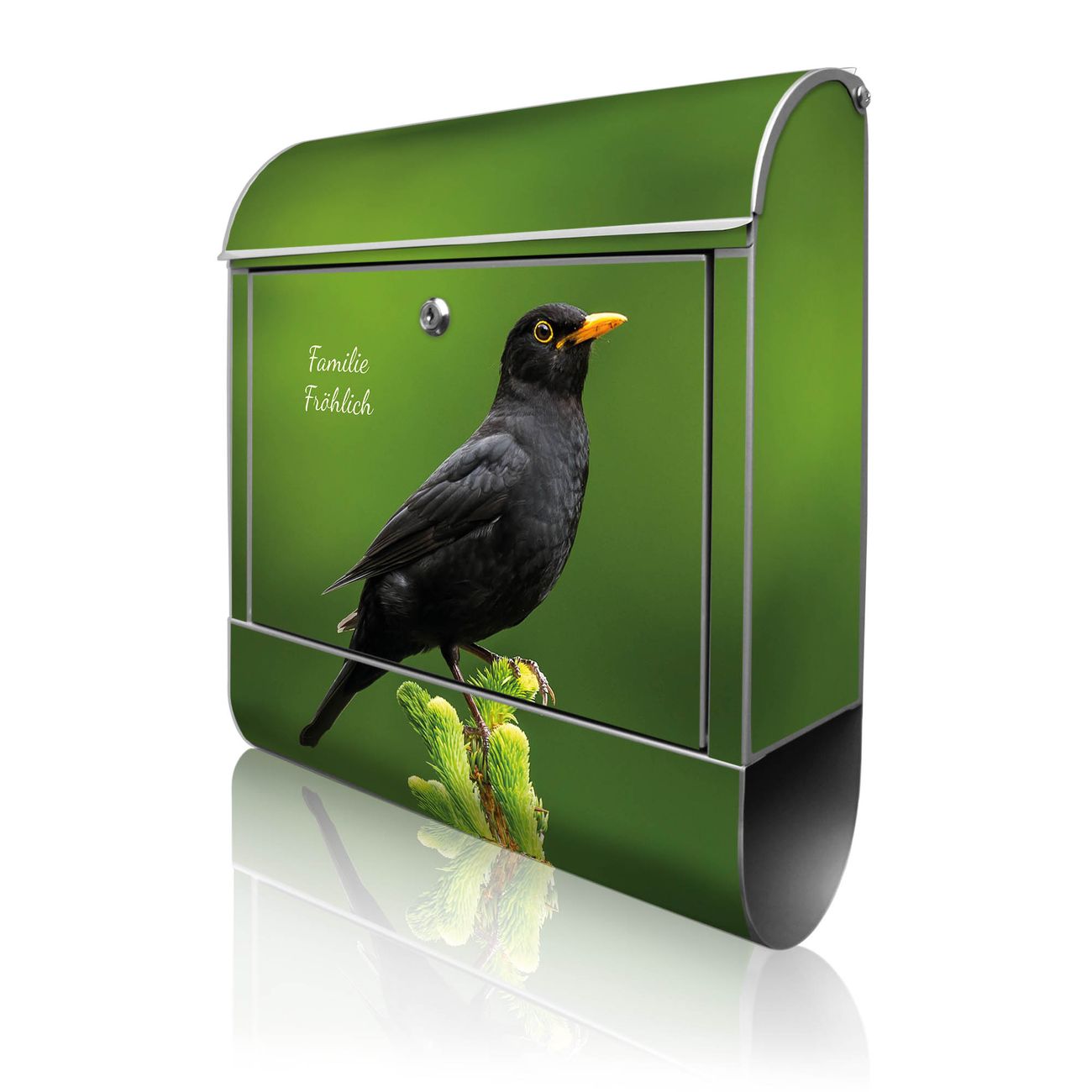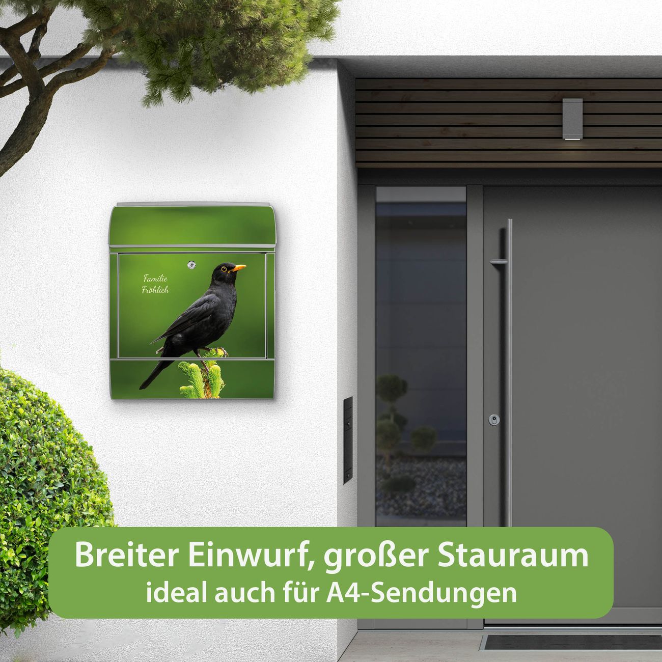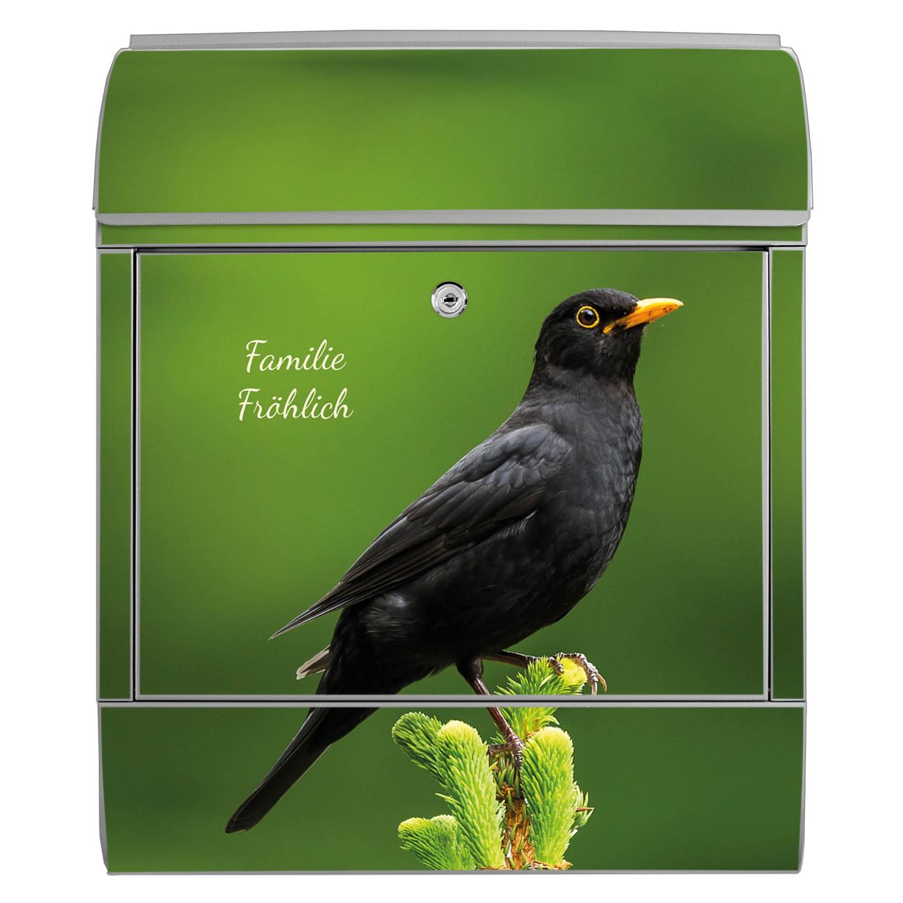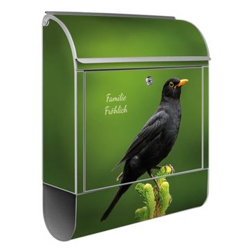 Großer Stahl Briefkasten Motiv Vogel auf Tannenzweig
