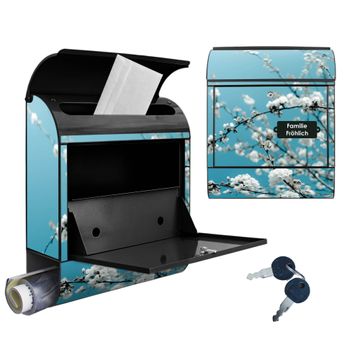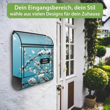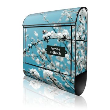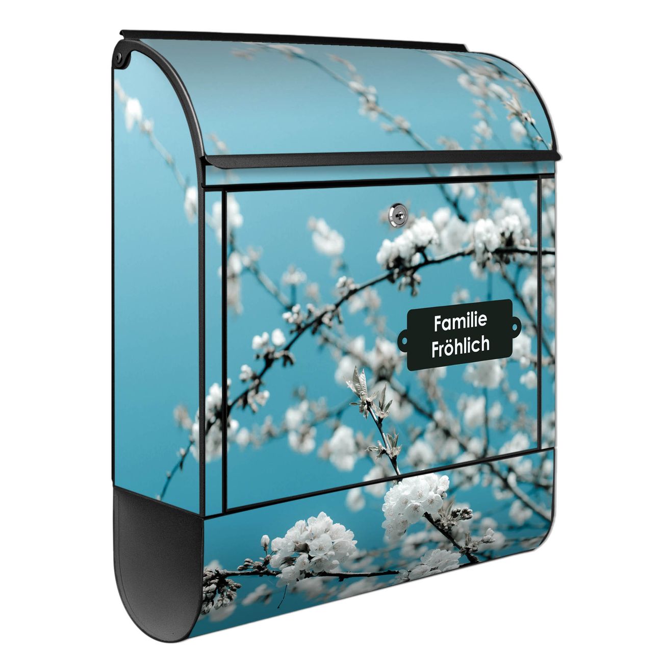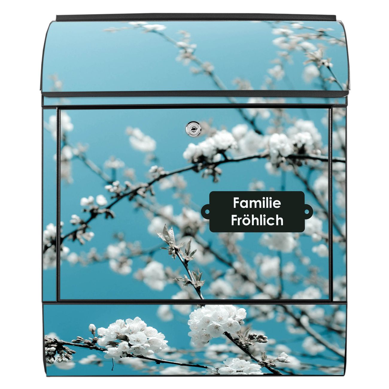 Großer Stahl Briefkasten Motiv weiße Kirschblüten