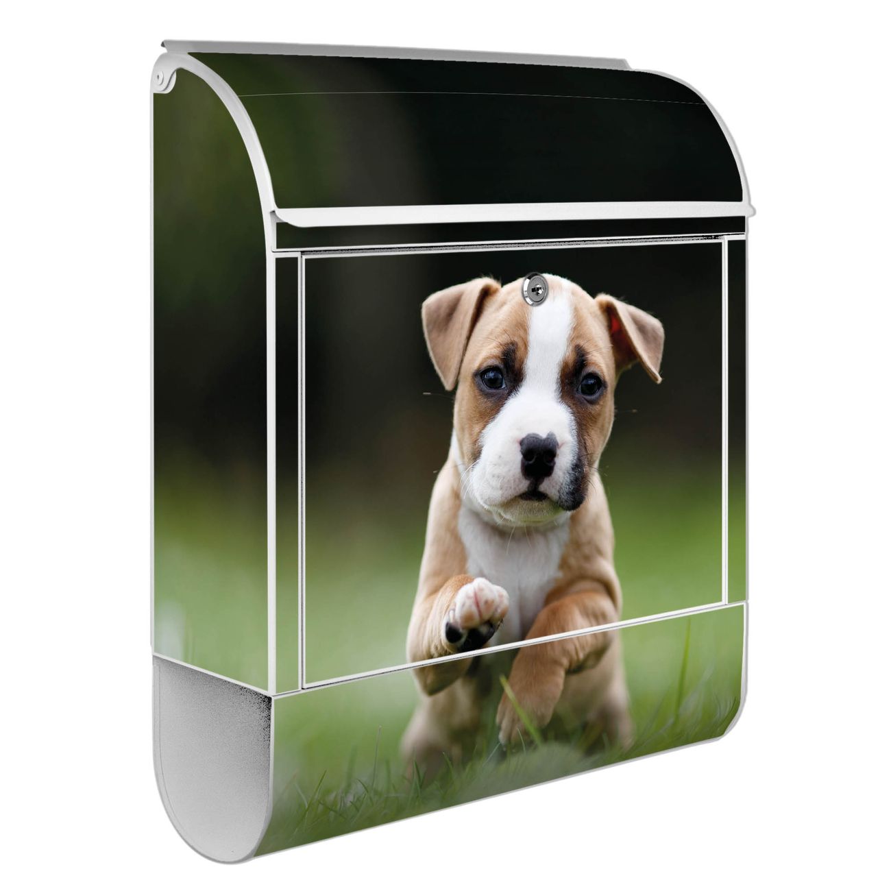 Großer Stahl Briefkasten Motiv Welpe im Gras
