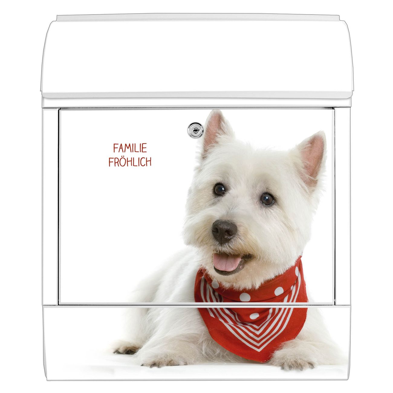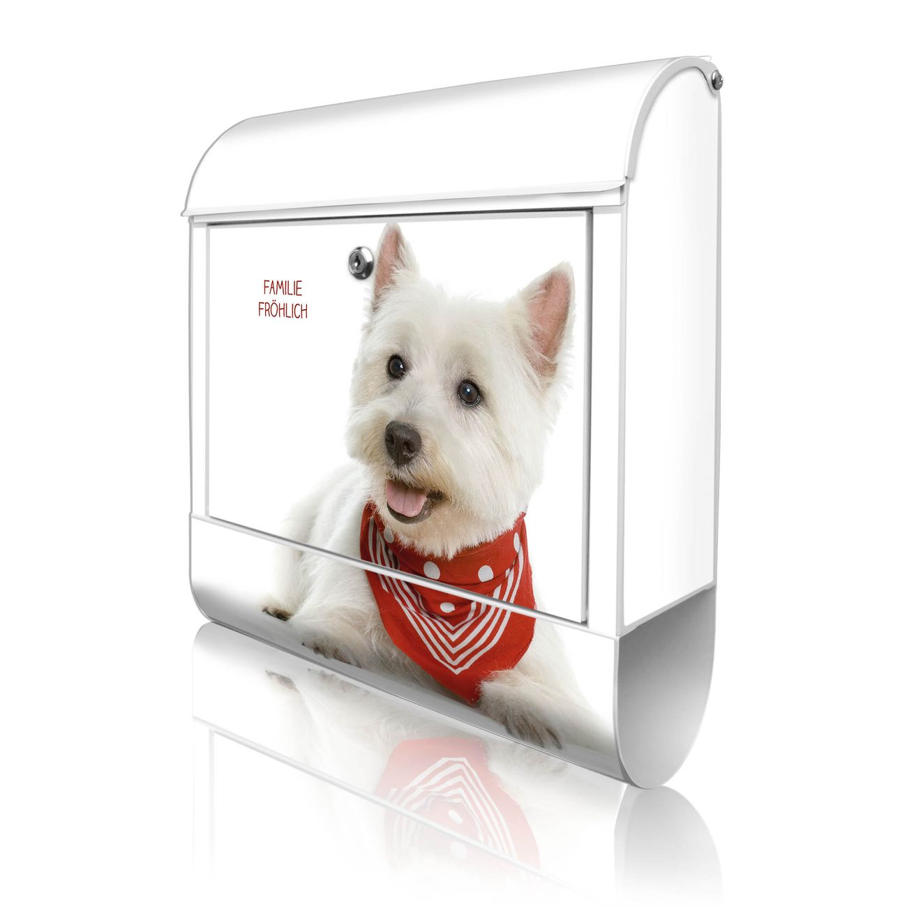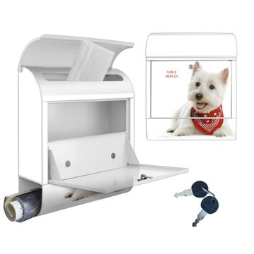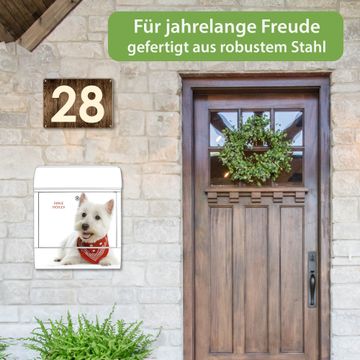 DESIGN: Der Postkasten mit Motiv Motiv Westie hat ein sehr ansprechendes und ausgefallenes Design, damit entlocken Sie Ihren Nachbarn und dem Postboten ein Lächeln. Heben Sie Sich von der tristen grauen Masse ab, ohne auf Funktionalität zu verzichten. DETAILS: Der Postkasten besteht aus pulverbeschichtetem Stahl. Er ist 38x46x12,5cm groß. Das Motiv besteht aus einer wetter- und UV-resistenten Folie, die mit einem Schutzlaminat überzogen ist, sodass der Briefkasten zusätzlich vor Kratzern geschützt ist. Der Briefkasten wird mit Montagematerial, zusätzlich zwei Schlüssel sowie einer Bohrschablone geliefert. NUTZEN: Sie können diesen Briefkasten sowohl als Wandbriefkasten montieren oder einen passenden Ständer kaufen und als Standbriefkasten einbetonieren. Die Größe bietet genügend Platz für Sendungen aller Art, der Einwurf fasst auch größere A4 Sendungen. BANJADO: Ihr Briefkasten wird in Sachsen in einer kleinen Manufaktur von Hand veredelt. Die Motivfolie ist lösungsmittelfrei und schutzlaminiert für einen langen Halt. Wir legen großen Wert auf die Verbindung von Funktionalität und Design. Sie erhalten Handarbeit aus Sachsen.