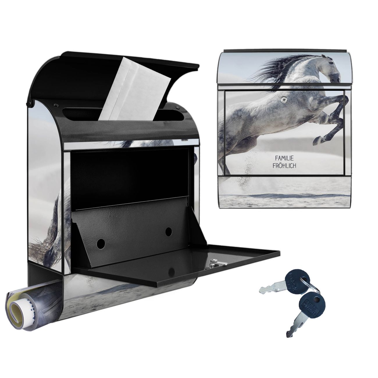 Großer Stahl Briefkasten Motiv Wildes Pferd