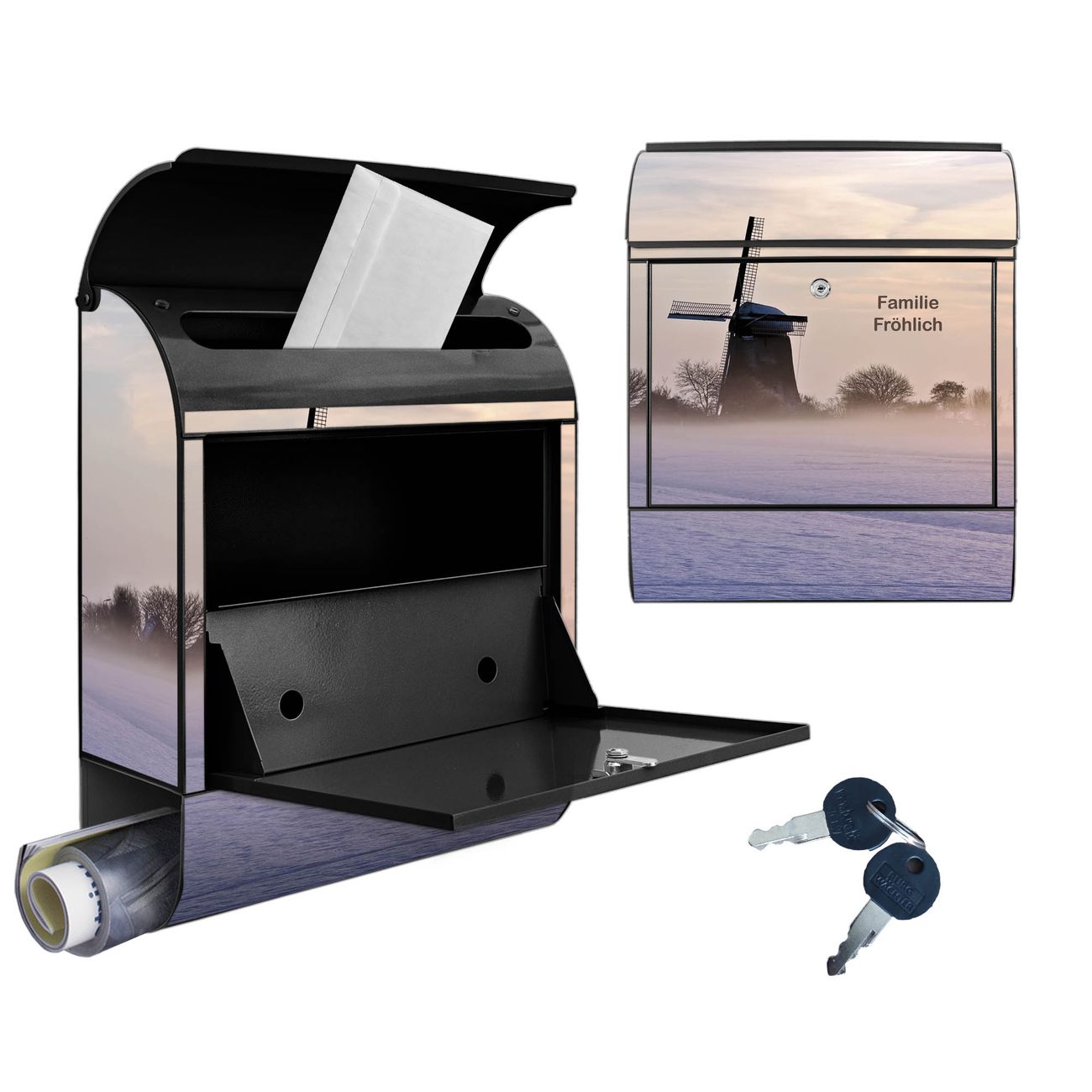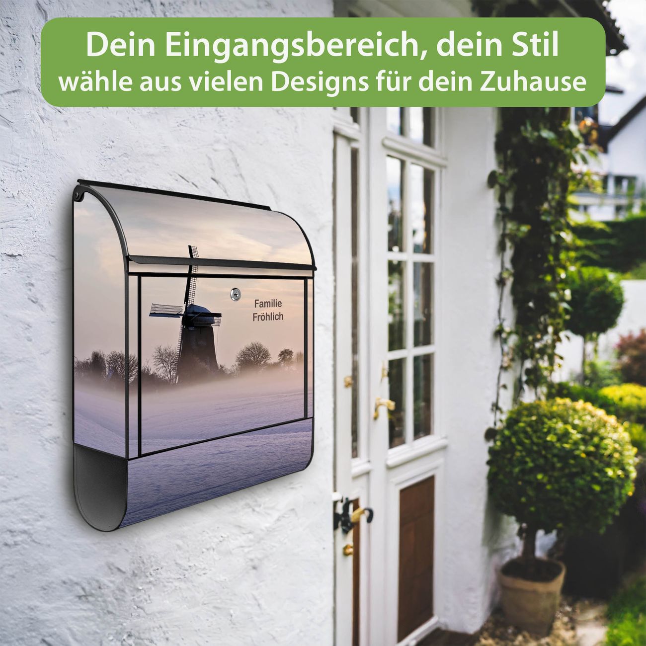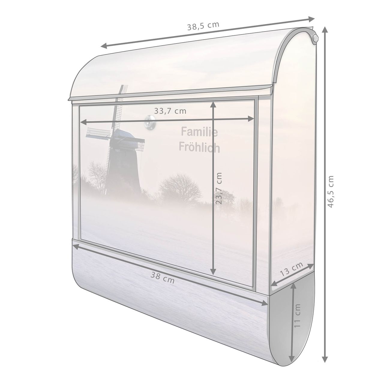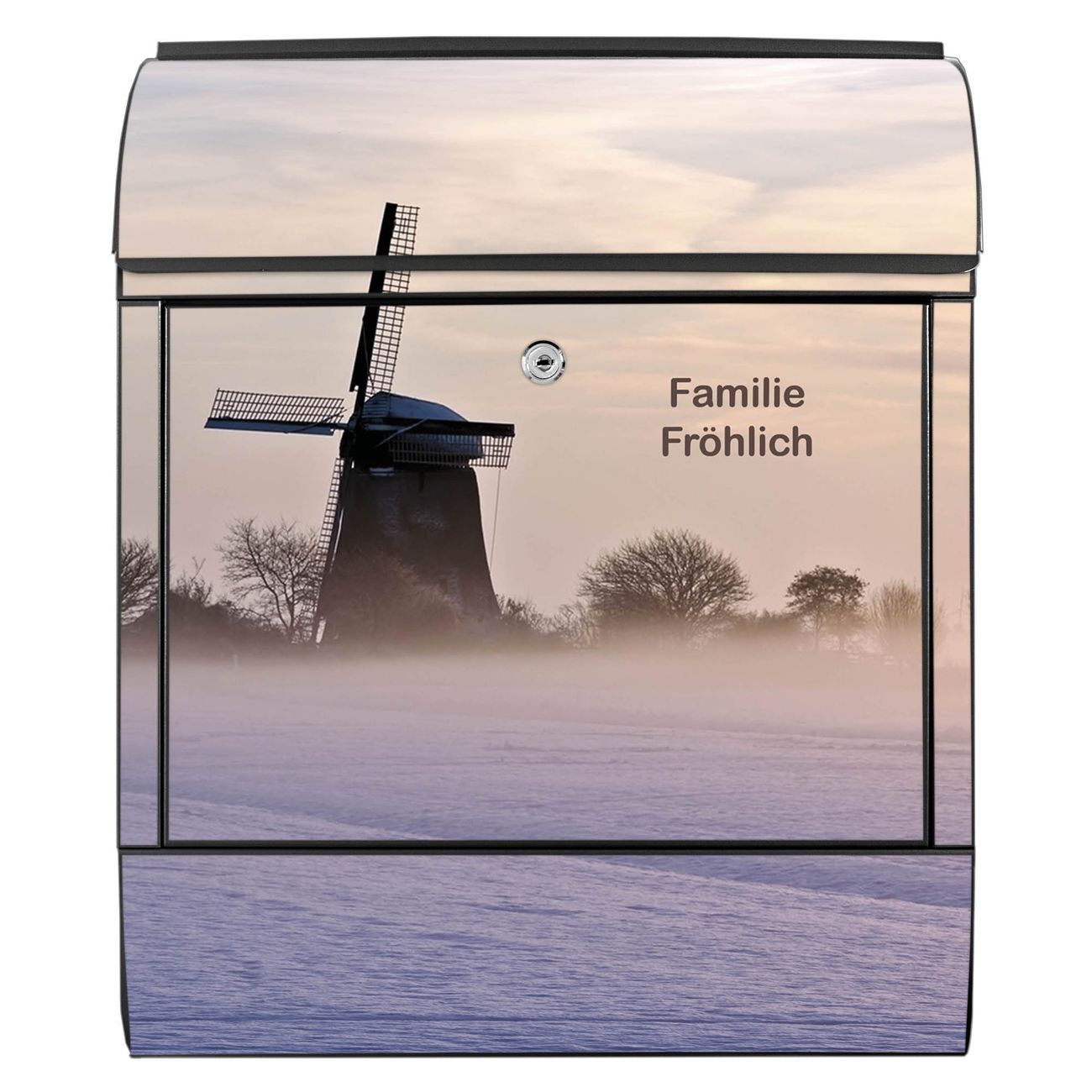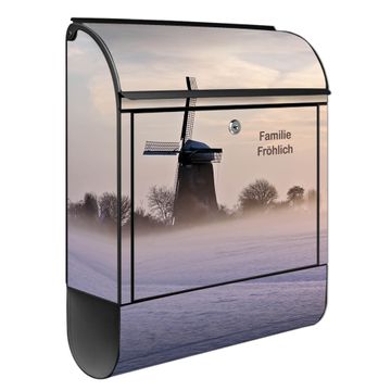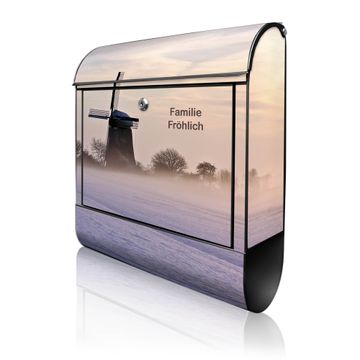Großer Stahl Briefkasten Motiv Windmühle im Winter