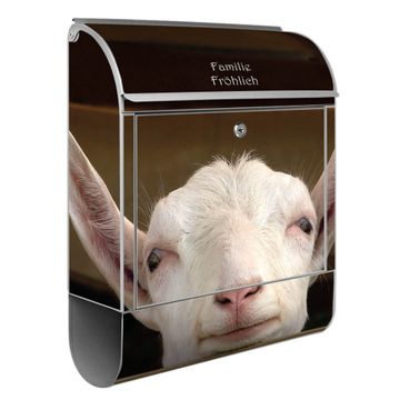 DESIGN: Der Postkasten mit Motiv Motiv Ziege hat ein sehr ansprechendes und ausgefallenes Design, damit entlocken Sie Ihren Nachbarn und dem Postboten ein Lächeln. Heben Sie Sich von der tristen grauen Masse ab, ohne auf Funktionalität zu verzichten. DETAILS: Der Postkasten besteht aus pulverbeschichtetem Stahl. Er ist 38x46x12,5cm groß. Das Motiv besteht aus einer wetter- und UV-resistenten Folie, die mit einem Schutzlaminat überzogen ist, sodass der Briefkasten zusätzlich vor Kratzern geschützt ist. Der Briefkasten wird mit Montagematerial, zusätzlich zwei Schlüssel sowie einer Bohrschablone geliefert. NUTZEN: Sie können diesen Briefkasten sowohl als Wandbriefkasten montieren oder einen passenden Ständer kaufen und als Standbriefkasten einbetonieren. Die Größe bietet genügend Platz für Sendungen aller Art, der Einwurf fasst auch größere A4 Sendungen. BANJADO: Ihr Briefkasten wird in Sachsen in einer kleinen Manufaktur von Hand veredelt. Die Motivfolie ist lösungsmittelfrei und schutzlaminiert für einen langen Halt. Wir legen großen Wert auf die Verbindung von Funktionalität und Design. Sie erhalten Handarbeit aus Sachsen.