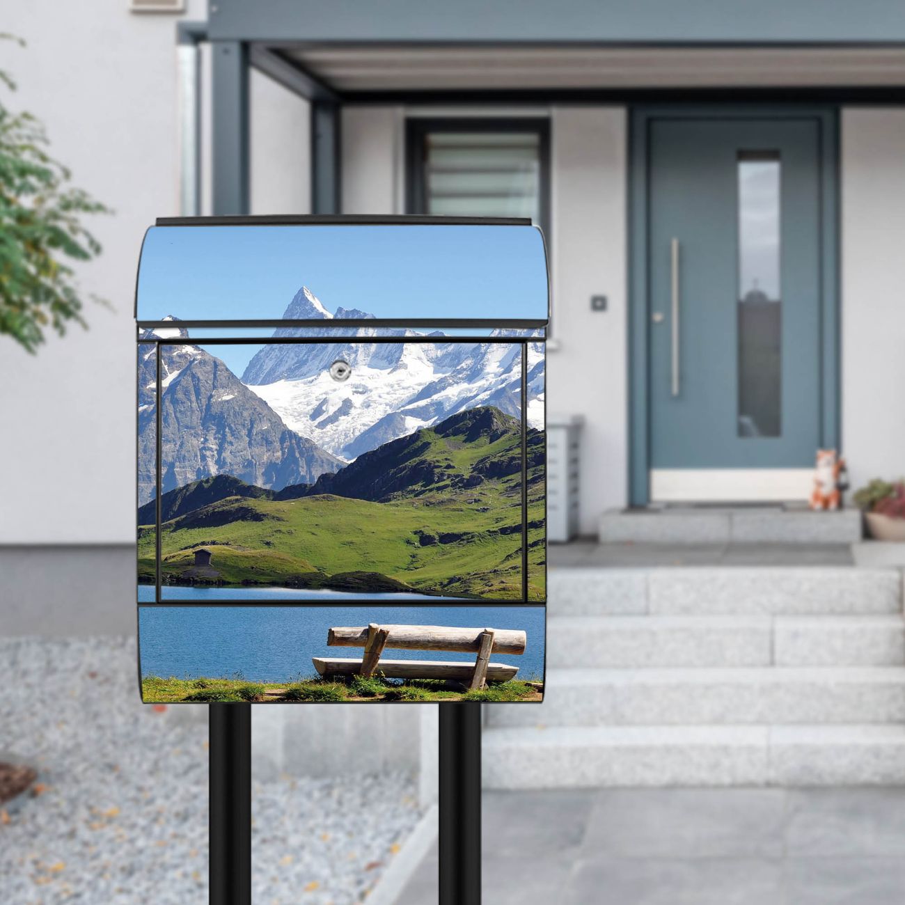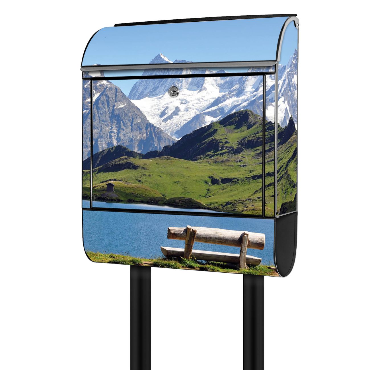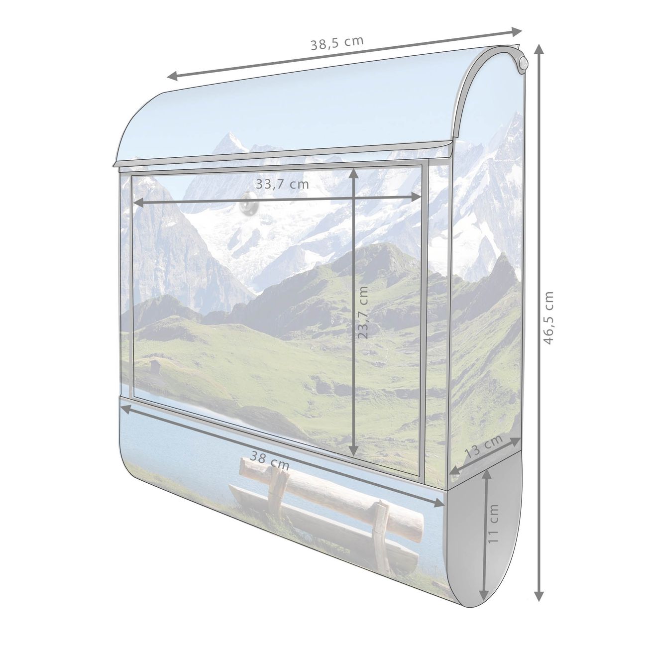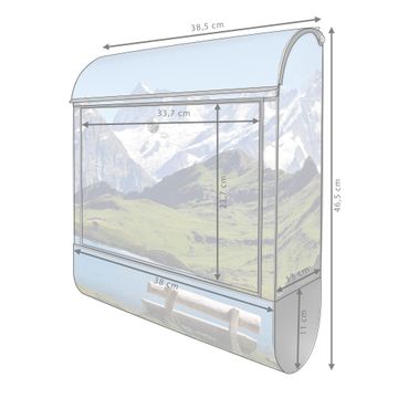 Der banjado Standbriefkasten mit Motiv Motiv Alpen kombiniert großzügigen Stauraum mit modernem Design. Durch das geräumige Fach finden auch große A4-Sendungen problemlos Platz. Die integrierte Zeitungsrolle sorgt dafür, dass Tageszeitungen und Magazine separat und griffbereit untergebracht sind. Der pulverbeschichtete Standfuß ist farblich passend zum Briefkasten gestaltet und sorgt für ein stimmiges Gesamtbild. Mit dem individuellen Motiv setzen Sie einen optischen Akzent, der sowohl praktisch als auch dekorativ ist.