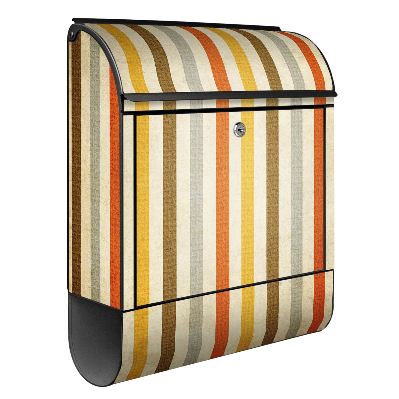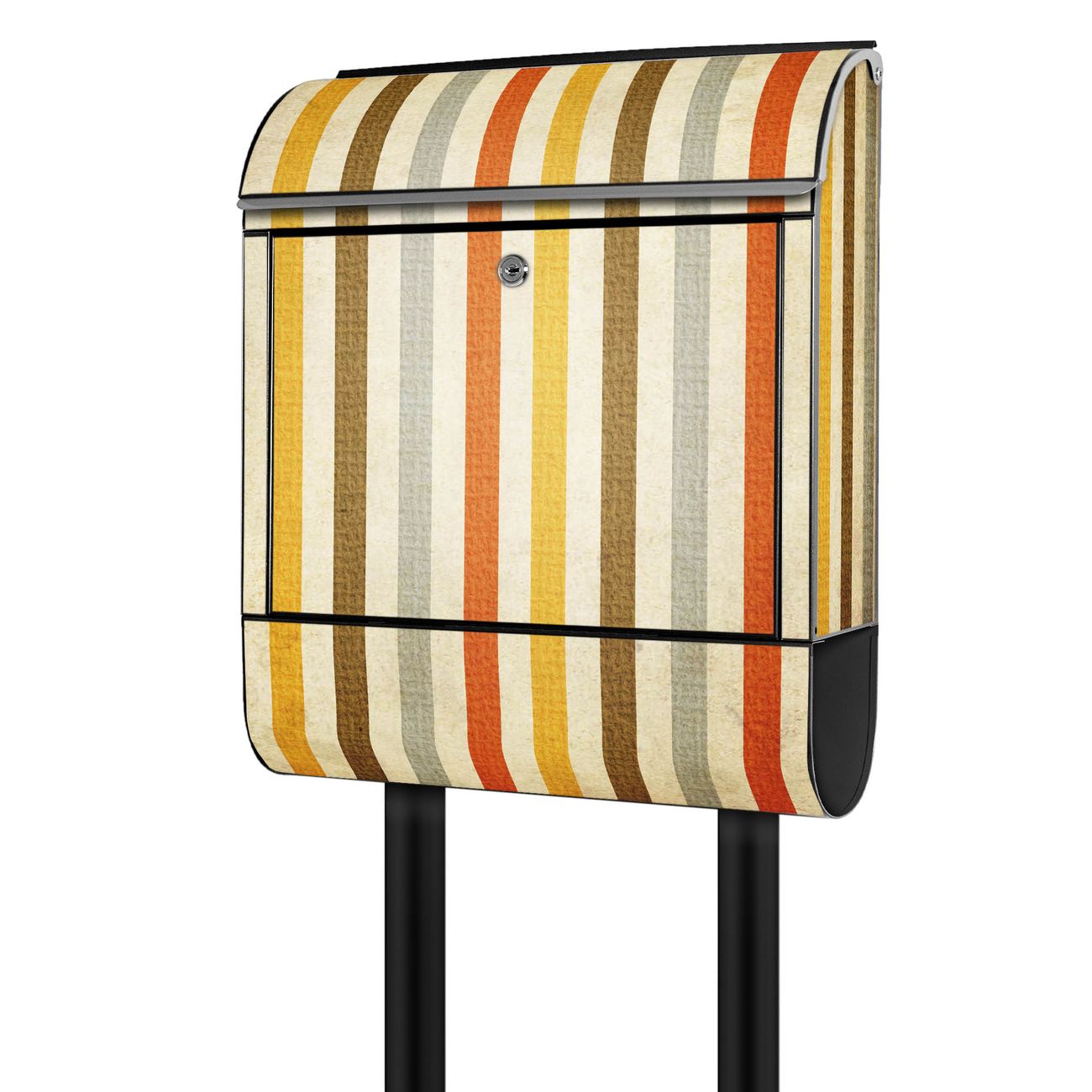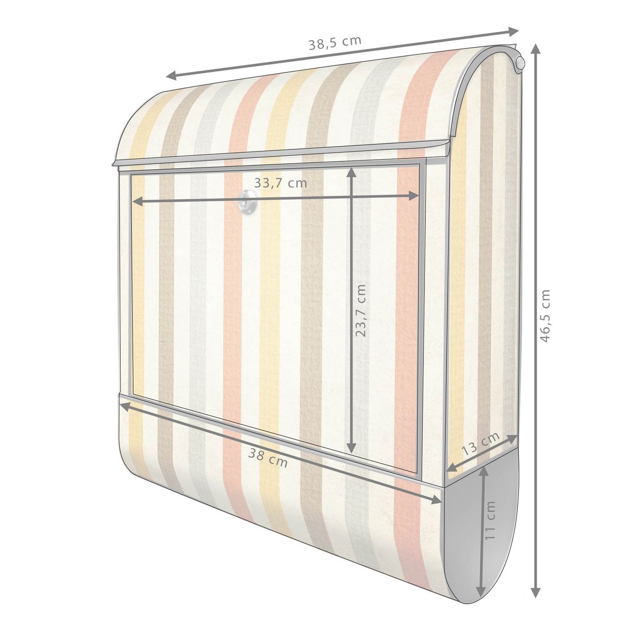 Der banjado Standbriefkasten mit Motiv Motiv Alte Streifen kombiniert großzügigen Stauraum mit modernem Design. Durch das geräumige Fach finden auch große A4-Sendungen problemlos Platz. Die integrierte Zeitungsrolle sorgt dafür, dass Tageszeitungen und Magazine separat und griffbereit untergebracht sind. Der pulverbeschichtete Standfuß ist farblich passend zum Briefkasten gestaltet und sorgt für ein stimmiges Gesamtbild. Mit dem individuellen Motiv setzen Sie einen optischen Akzent, der sowohl praktisch als auch dekorativ ist.