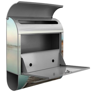 Der banjado Standbriefkasten mit Motiv Motiv Alter Steg kombiniert großzügigen Stauraum mit modernem Design. Durch das geräumige Fach finden auch große A4-Sendungen problemlos Platz. Die integrierte Zeitungsrolle sorgt dafür, dass Tageszeitungen und Magazine separat und griffbereit untergebracht sind. Der pulverbeschichtete Standfuß ist farblich passend zum Briefkasten gestaltet und sorgt für ein stimmiges Gesamtbild. Mit dem individuellen Motiv setzen Sie einen optischen Akzent, der sowohl praktisch als auch dekorativ ist.