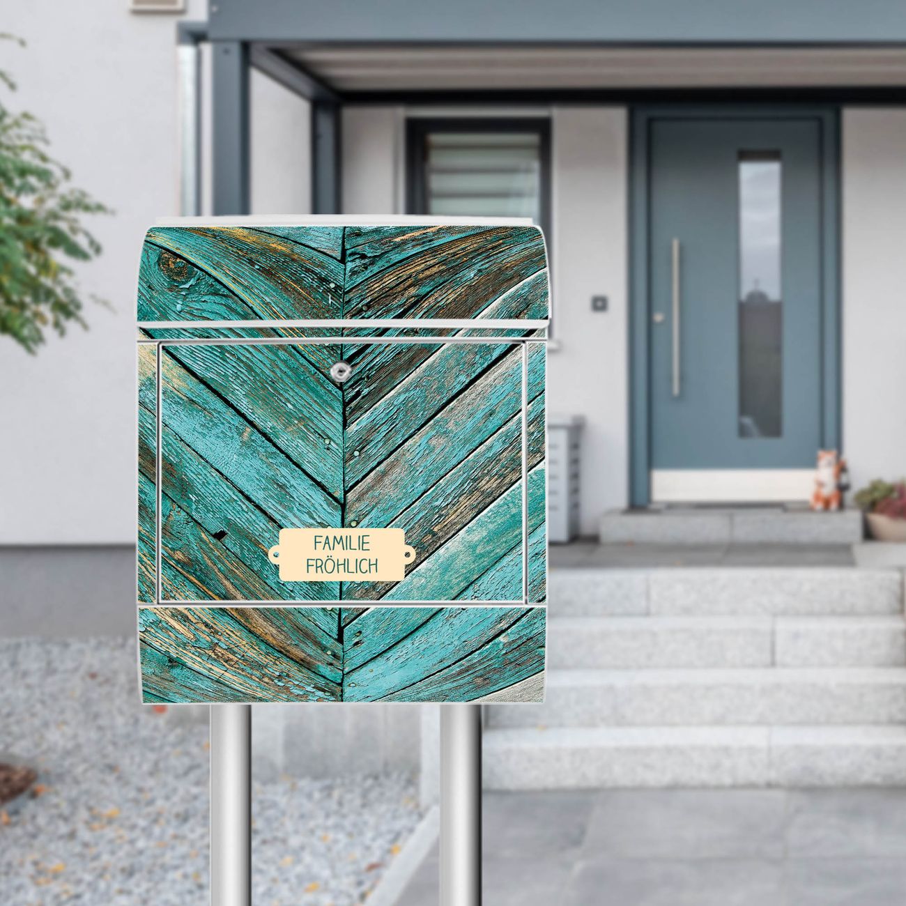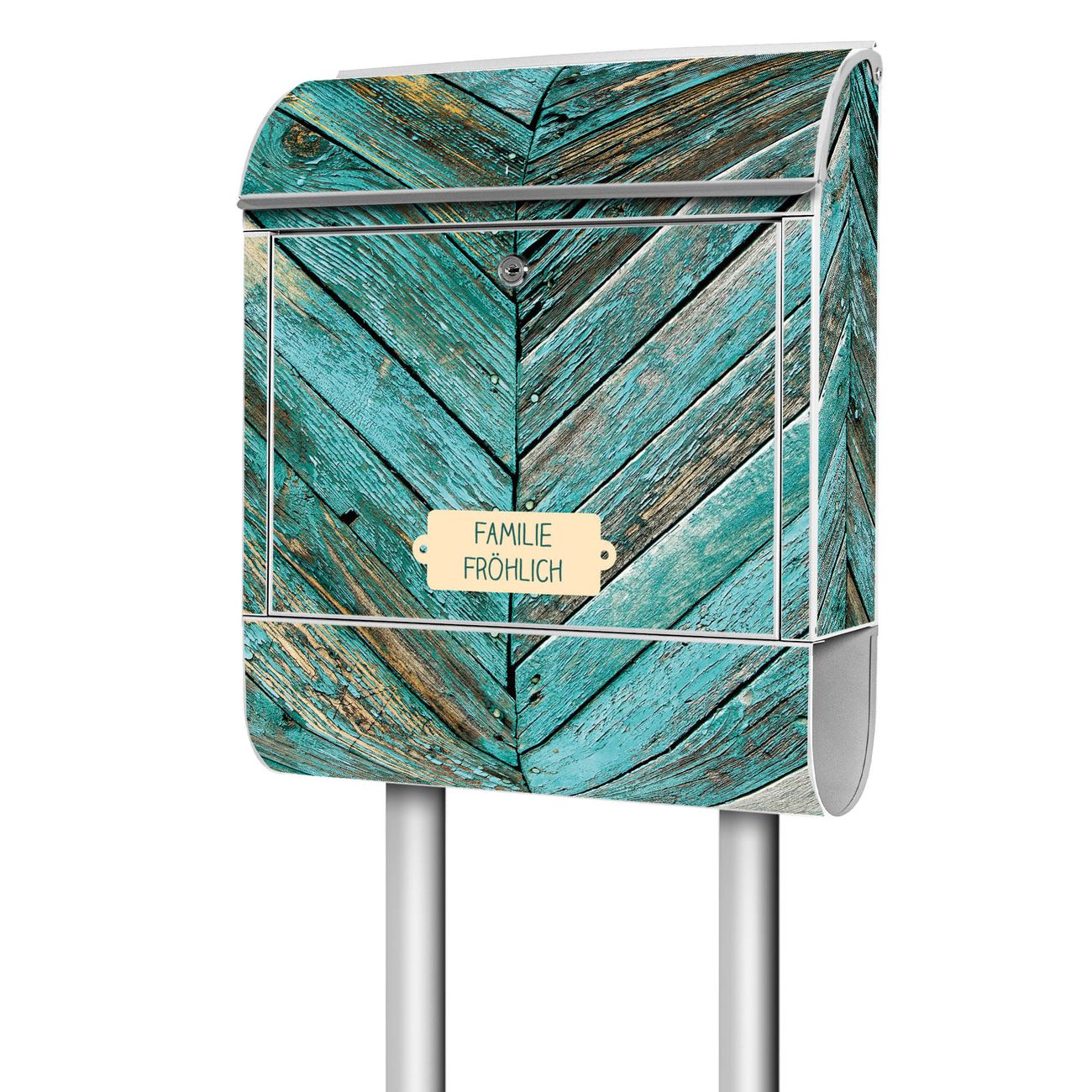 Standbriefkasten Stahl Altes Holz Blau