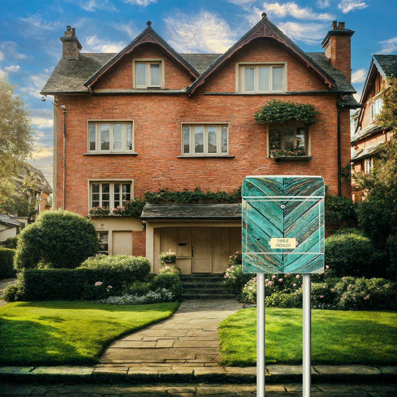 Der Standbriefkasten besteht aus pulverbeschichtetem Stahl und ist insgesamt ca. 161,5 x 47 x 16 cm groß. Das Motiv wird auf eine wetter- und UV-beständige Folie aufgebracht und mit einem robusten Schutzlaminat versiegelt. Damit bleibt die Farbbrillanz auch bei Sonne und Regen lange erhalten. Für einen sicheren Halt empfehlen wir, den Standbriefkasten mindestens 15 cm einzubetonieren. Jeder Briefkasten wird in Sachsen in einer kleinen Manufaktur von Hand veredelt - Sie erhalten ein Stück langlebige Handarbeit, das Funktionalität und Design vereint.