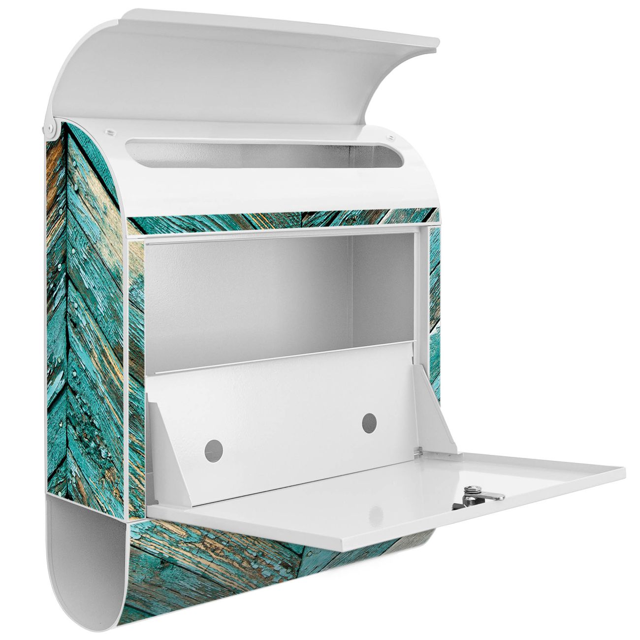 Der banjado Standbriefkasten mit Motiv Motiv Altes Holz Blau kombiniert großzügigen Stauraum mit modernem Design. Durch das geräumige Fach finden auch große A4-Sendungen problemlos Platz. Die integrierte Zeitungsrolle sorgt dafür, dass Tageszeitungen und Magazine separat und griffbereit untergebracht sind. Der pulverbeschichtete Standfuß ist farblich passend zum Briefkasten gestaltet und sorgt für ein stimmiges Gesamtbild. Mit dem individuellen Motiv setzen Sie einen optischen Akzent, der sowohl praktisch als auch dekorativ ist.