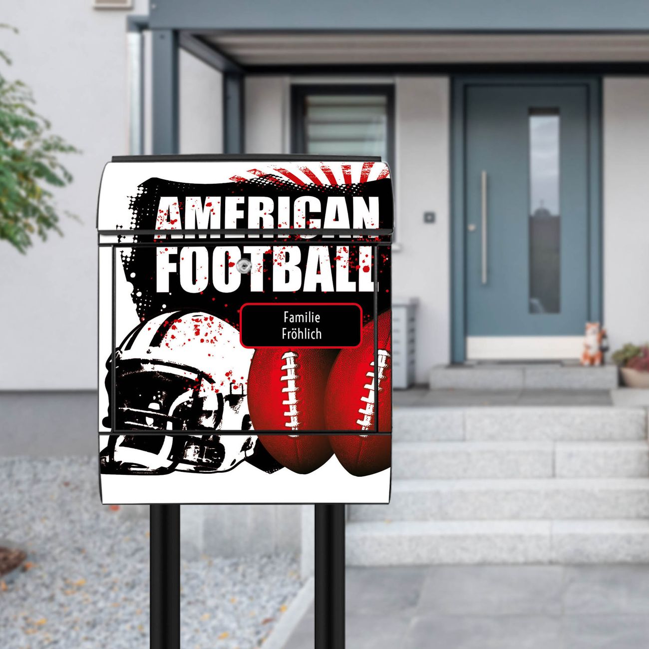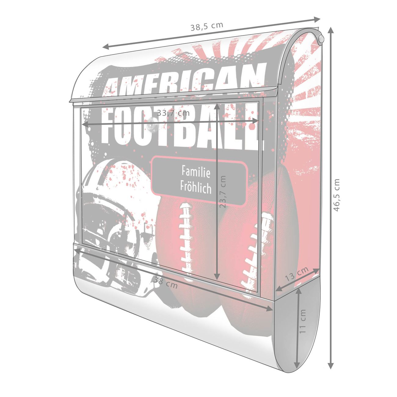Der banjado Standbriefkasten mit Motiv Motiv American Football kombiniert großzügigen Stauraum mit modernem Design. Durch das geräumige Fach finden auch große A4-Sendungen problemlos Platz. Die integrierte Zeitungsrolle sorgt dafür, dass Tageszeitungen und Magazine separat und griffbereit untergebracht sind. Der pulverbeschichtete Standfuß ist farblich passend zum Briefkasten gestaltet und sorgt für ein stimmiges Gesamtbild. Mit dem individuellen Motiv setzen Sie einen optischen Akzent, der sowohl praktisch als auch dekorativ ist.