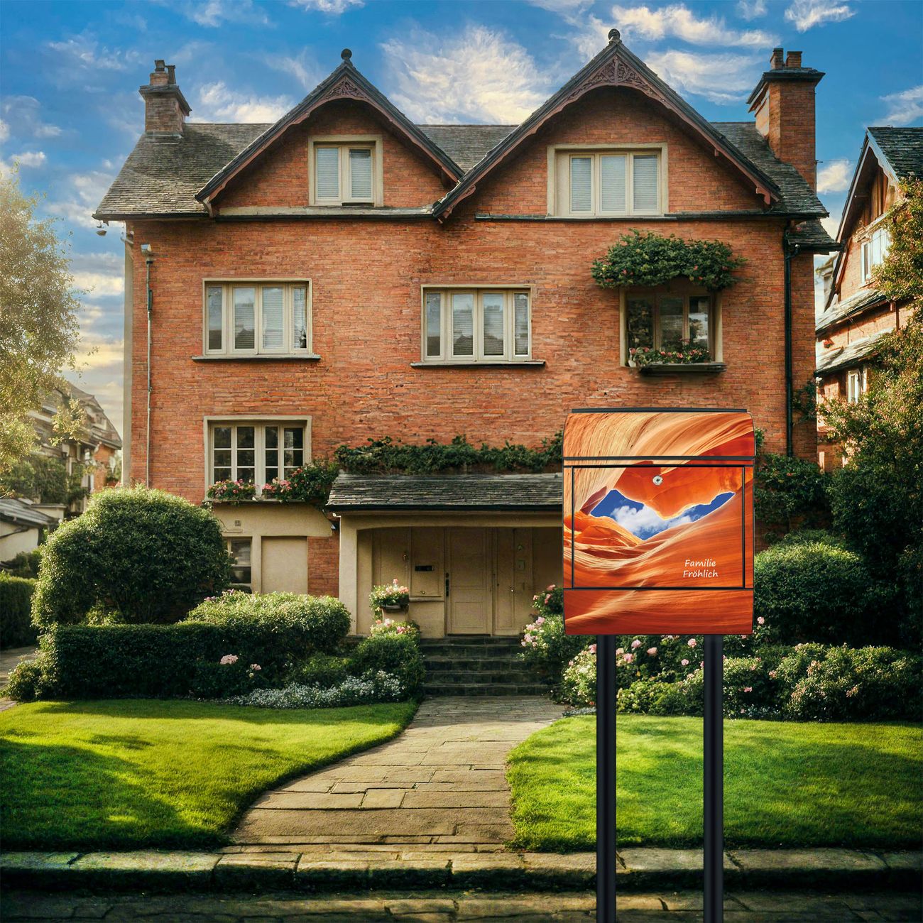 Der Standbriefkasten besteht aus pulverbeschichtetem Stahl und ist insgesamt ca. 161,5 x 47 x 16 cm groß. Das Motiv wird auf eine wetter- und UV-beständige Folie aufgebracht und mit einem robusten Schutzlaminat versiegelt. Damit bleibt die Farbbrillanz auch bei Sonne und Regen lange erhalten. Für einen sicheren Halt empfehlen wir, den Standbriefkasten mindestens 15 cm einzubetonieren. Jeder Briefkasten wird in Sachsen in einer kleinen Manufaktur von Hand veredelt - Sie erhalten ein Stück langlebige Handarbeit, das Funktionalität und Design vereint.