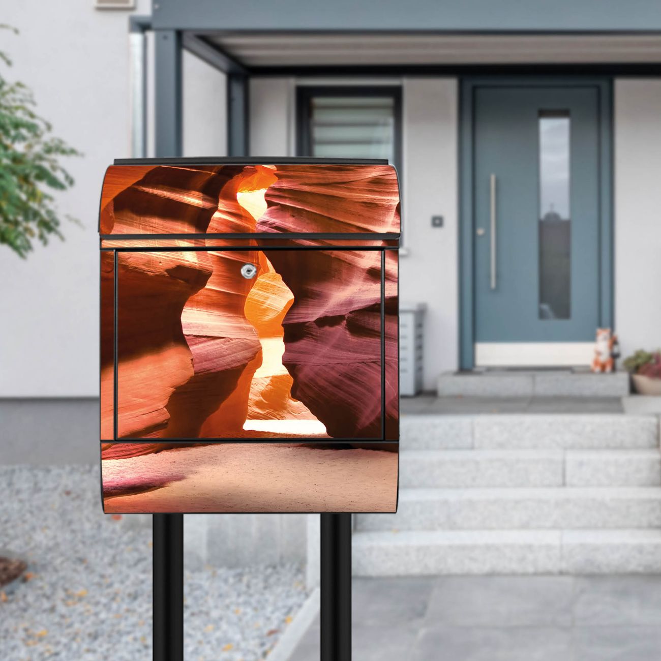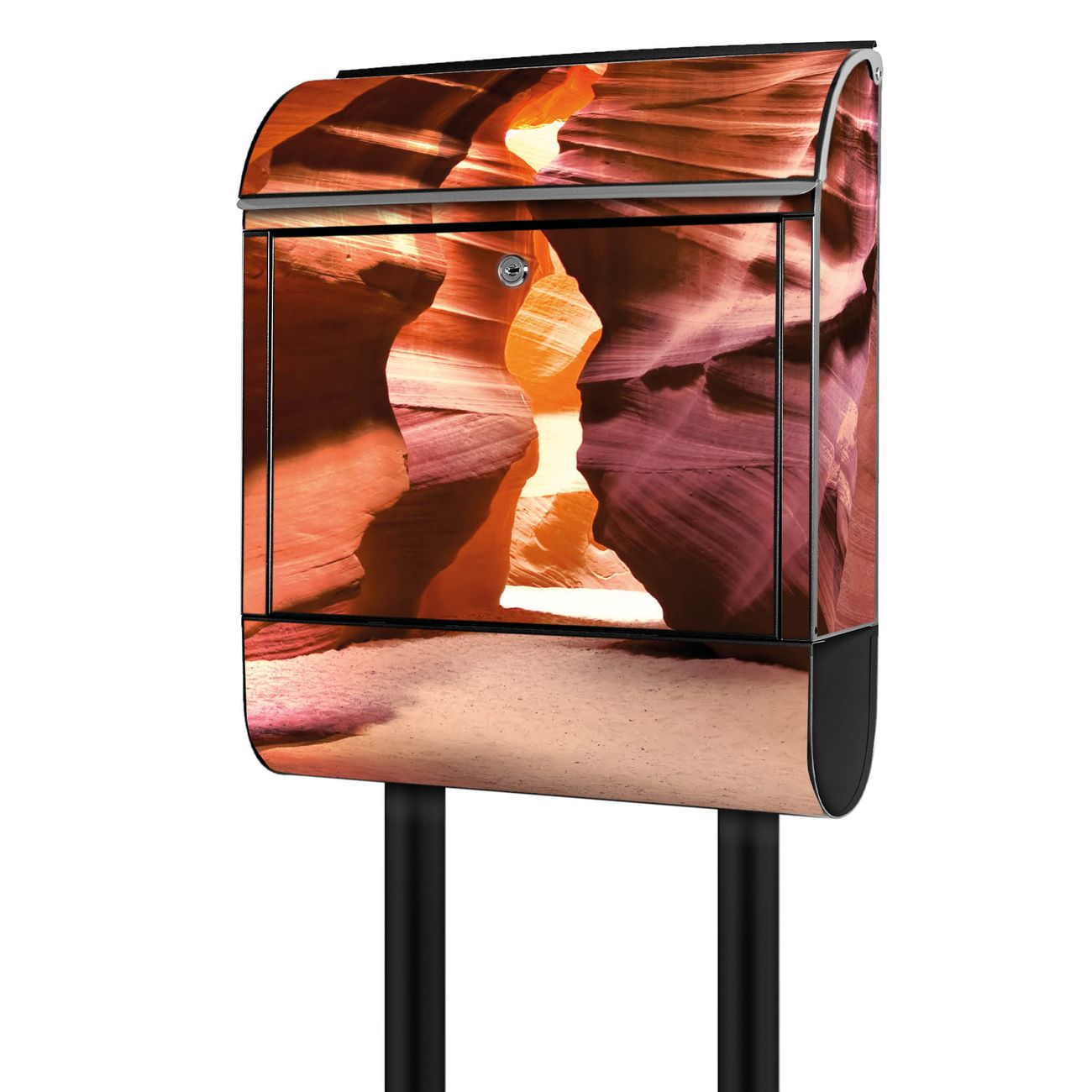 Der banjado Standbriefkasten mit Motiv Motiv Antelope Canyon kombiniert großzügigen Stauraum mit modernem Design. Durch das geräumige Fach finden auch große A4-Sendungen problemlos Platz. Die integrierte Zeitungsrolle sorgt dafür, dass Tageszeitungen und Magazine separat und griffbereit untergebracht sind. Der pulverbeschichtete Standfuß ist farblich passend zum Briefkasten gestaltet und sorgt für ein stimmiges Gesamtbild. Mit dem individuellen Motiv setzen Sie einen optischen Akzent, der sowohl praktisch als auch dekorativ ist.