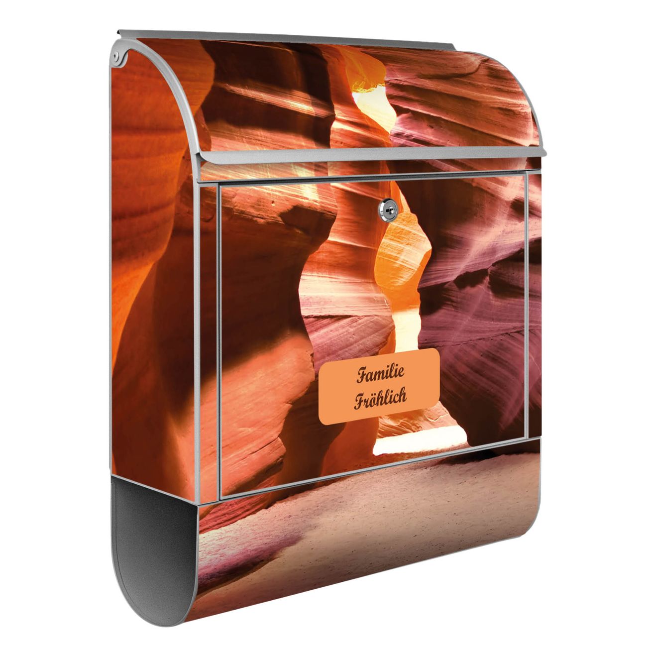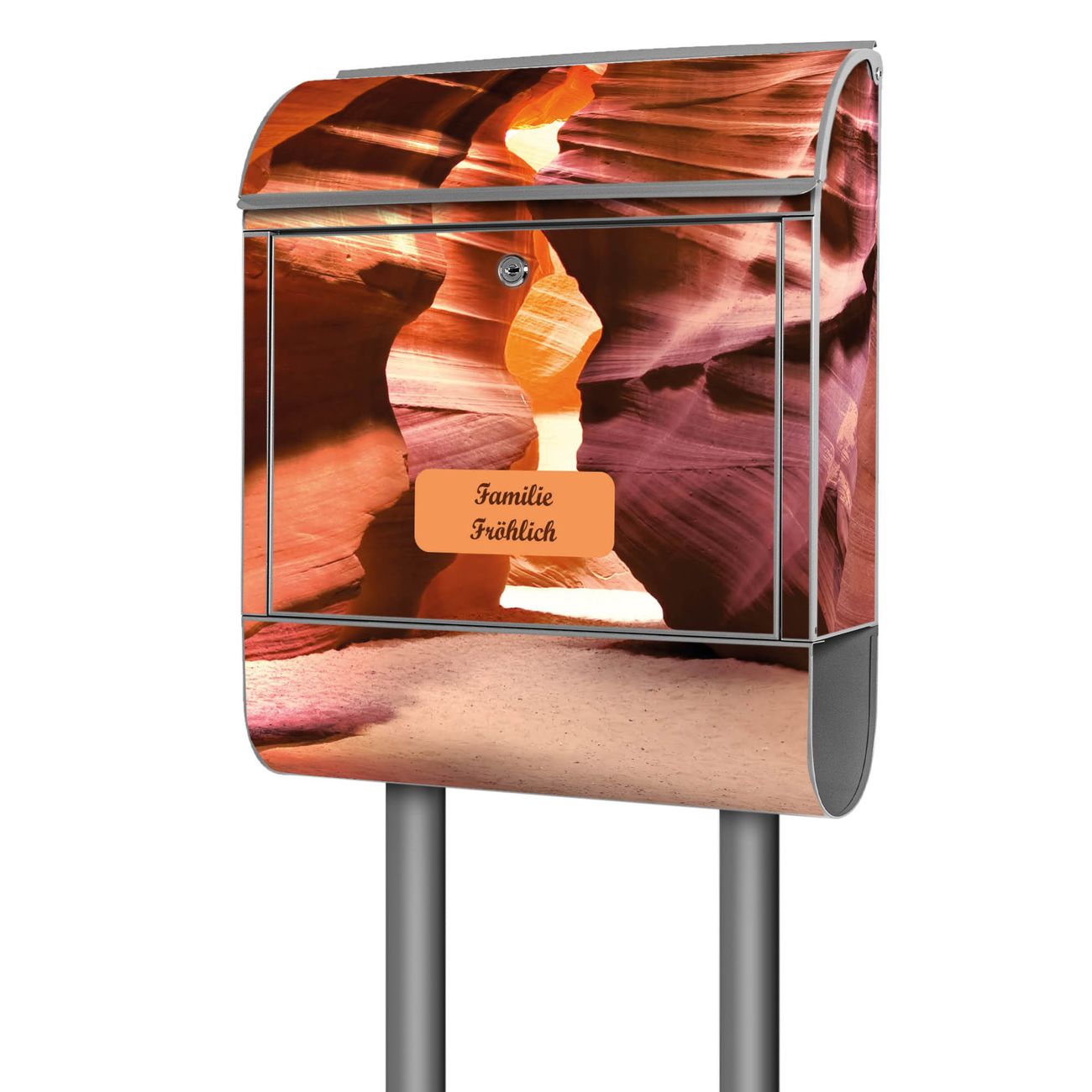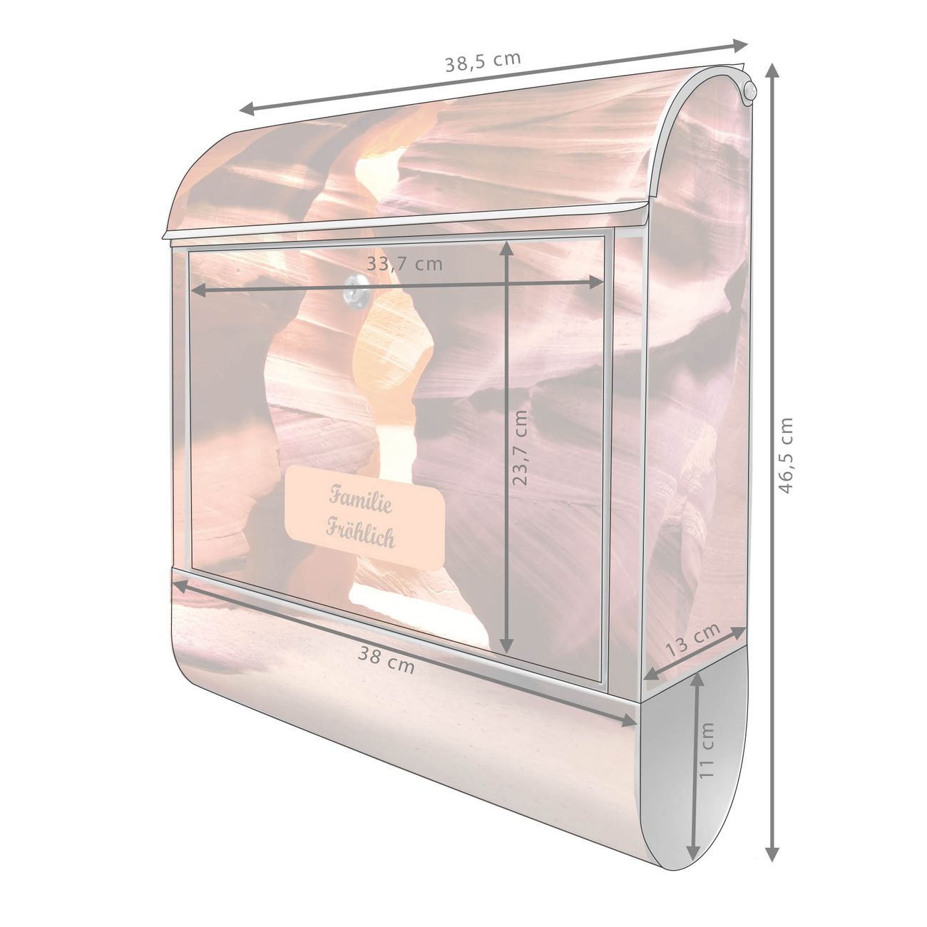 Der banjado Standbriefkasten mit Motiv Motiv Antelope Canyon kombiniert großzügigen Stauraum mit modernem Design. Durch das geräumige Fach finden auch große A4-Sendungen problemlos Platz. Die integrierte Zeitungsrolle sorgt dafür, dass Tageszeitungen und Magazine separat und griffbereit untergebracht sind. Der pulverbeschichtete Standfuß ist farblich passend zum Briefkasten gestaltet und sorgt für ein stimmiges Gesamtbild. Mit dem individuellen Motiv setzen Sie einen optischen Akzent, der sowohl praktisch als auch dekorativ ist.
