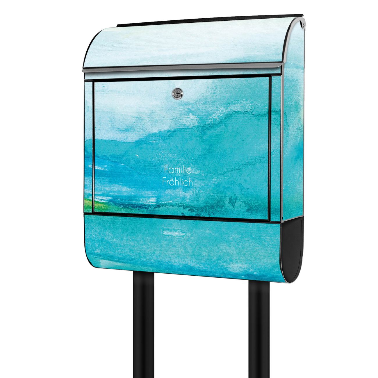 Standbriefkasten Stahl Aquarell Blau