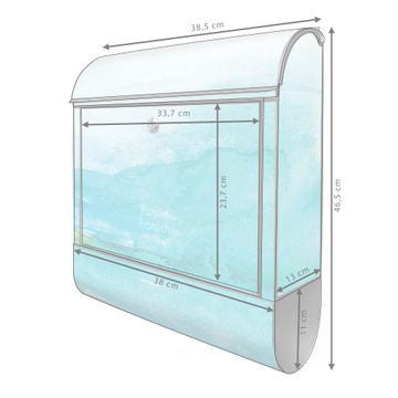 Der banjado Standbriefkasten mit Motiv Motiv Aquarell Blau kombiniert großzügigen Stauraum mit modernem Design. Durch das geräumige Fach finden auch große A4-Sendungen problemlos Platz. Die integrierte Zeitungsrolle sorgt dafür, dass Tageszeitungen und Magazine separat und griffbereit untergebracht sind. Der pulverbeschichtete Standfuß ist farblich passend zum Briefkasten gestaltet und sorgt für ein stimmiges Gesamtbild. Mit dem individuellen Motiv setzen Sie einen optischen Akzent, der sowohl praktisch als auch dekorativ ist.