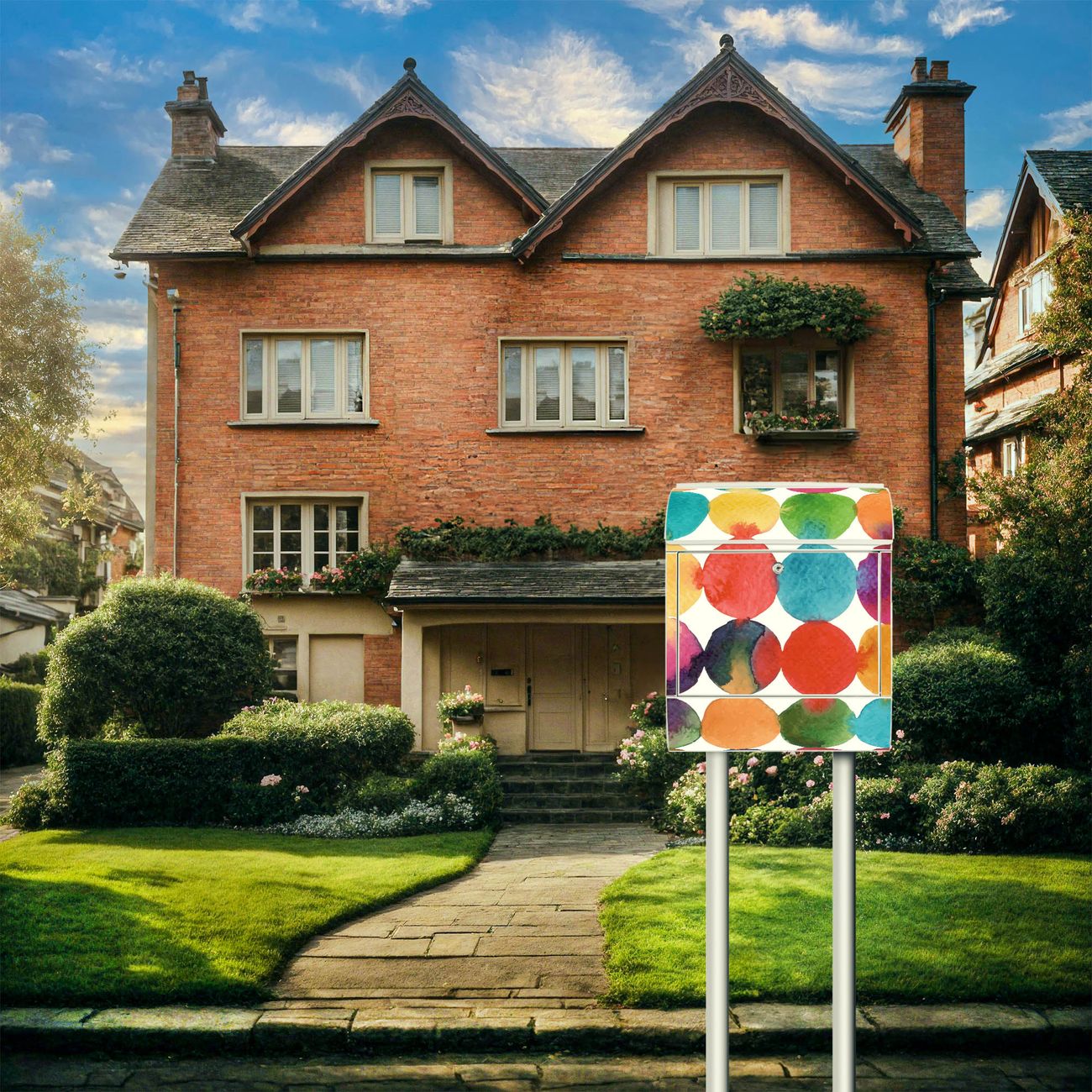 Der banjado Standbriefkasten mit Motiv Motiv Aquarell Kreise kombiniert großzügigen Stauraum mit modernem Design. Durch das geräumige Fach finden auch große A4-Sendungen problemlos Platz. Die integrierte Zeitungsrolle sorgt dafür, dass Tageszeitungen und Magazine separat und griffbereit untergebracht sind. Der pulverbeschichtete Standfuß ist farblich passend zum Briefkasten gestaltet und sorgt für ein stimmiges Gesamtbild. Mit dem individuellen Motiv setzen Sie einen optischen Akzent, der sowohl praktisch als auch dekorativ ist.