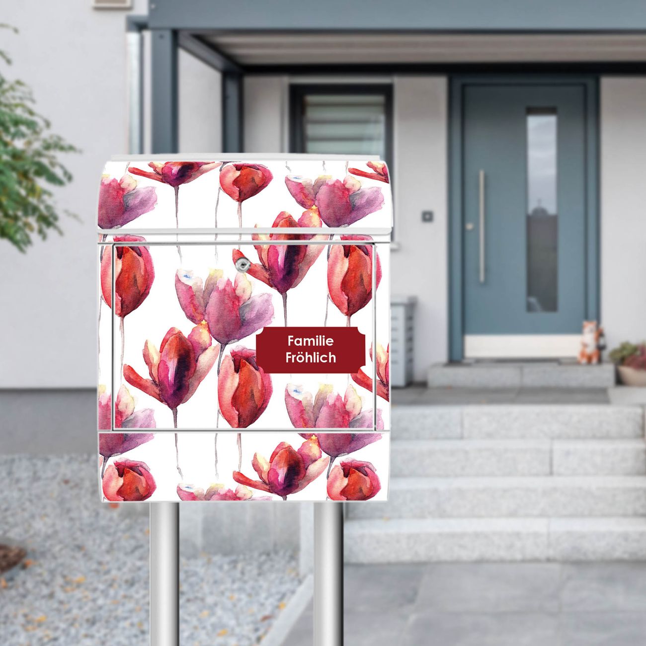 Standbriefkasten Stahl Aquarell Tulpen
