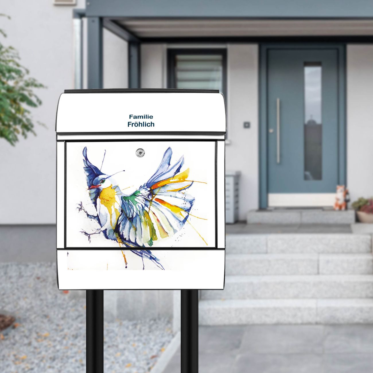 Standbriefkasten Stahl Aquarell Vogel
