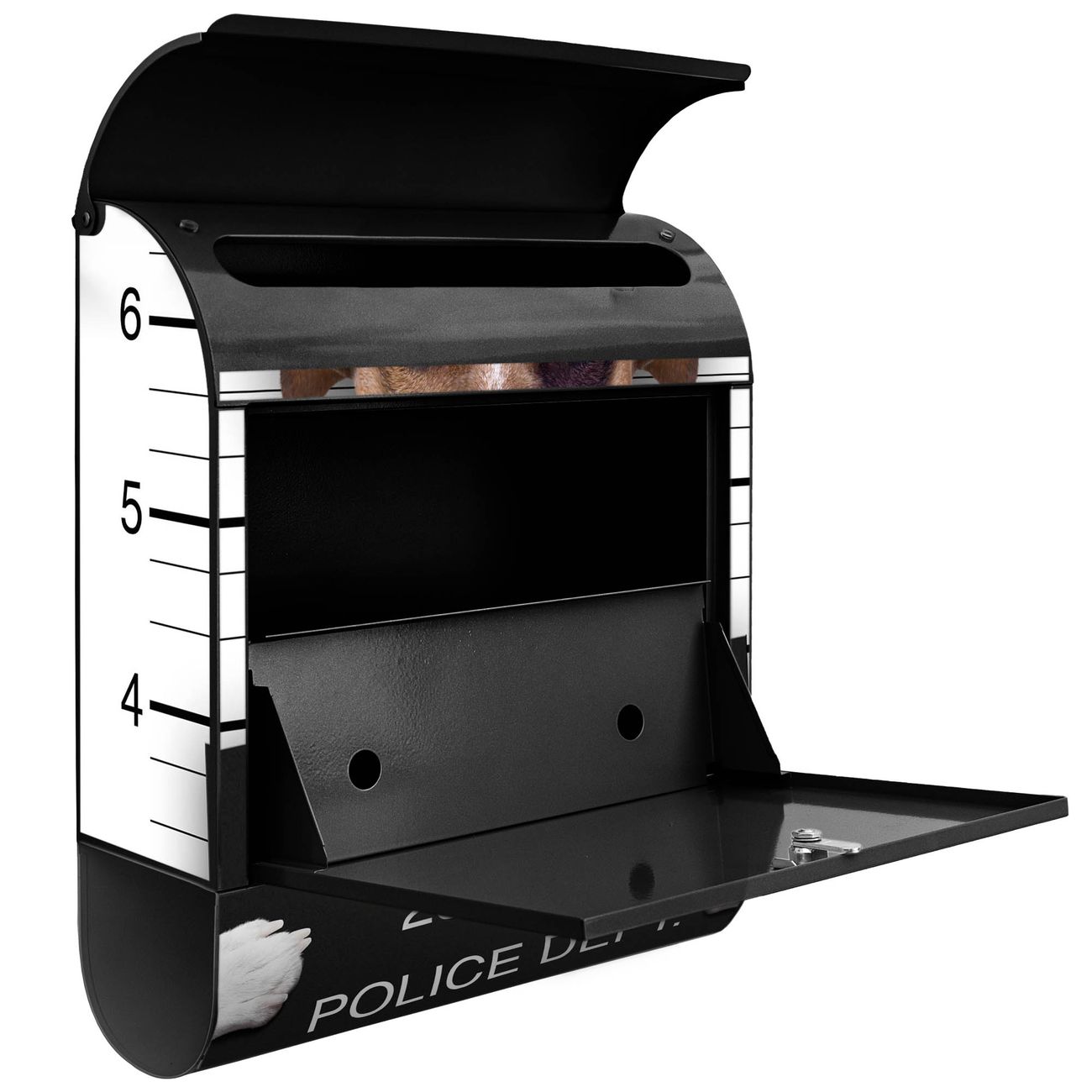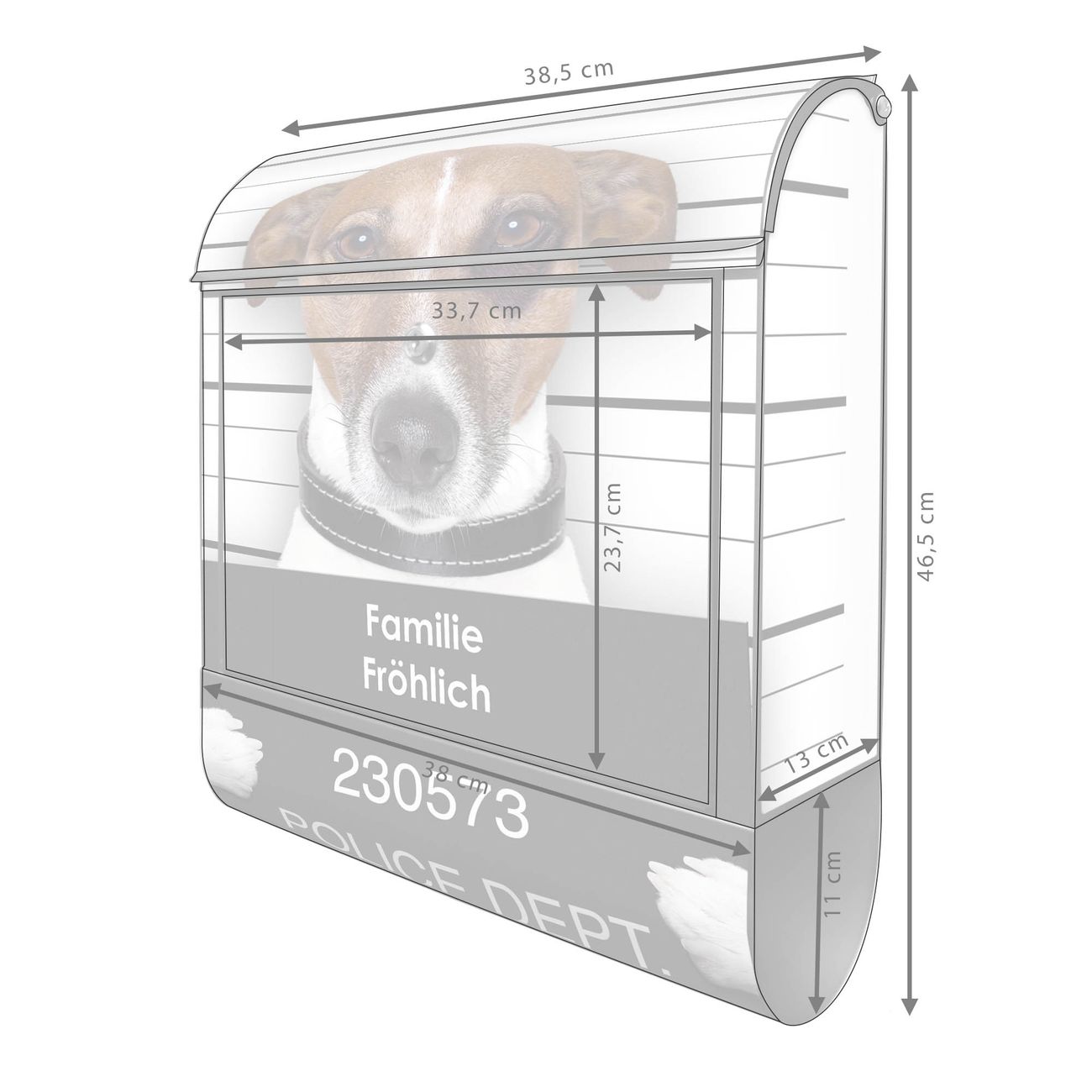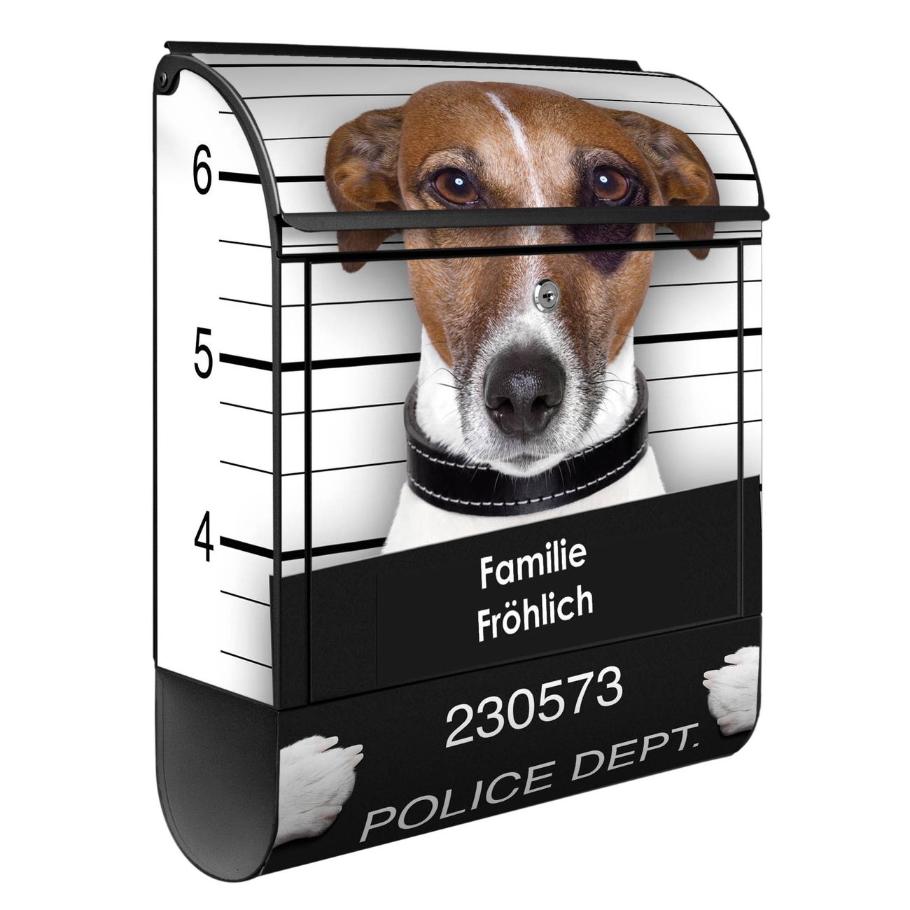 Der banjado Standbriefkasten mit Motiv Motiv Bad Dog Jack Russel kombiniert großzügigen Stauraum mit modernem Design. Durch das geräumige Fach finden auch große A4-Sendungen problemlos Platz. Die integrierte Zeitungsrolle sorgt dafür, dass Tageszeitungen und Magazine separat und griffbereit untergebracht sind. Der pulverbeschichtete Standfuß ist farblich passend zum Briefkasten gestaltet und sorgt für ein stimmiges Gesamtbild. Mit dem individuellen Motiv setzen Sie einen optischen Akzent, der sowohl praktisch als auch dekorativ ist.
